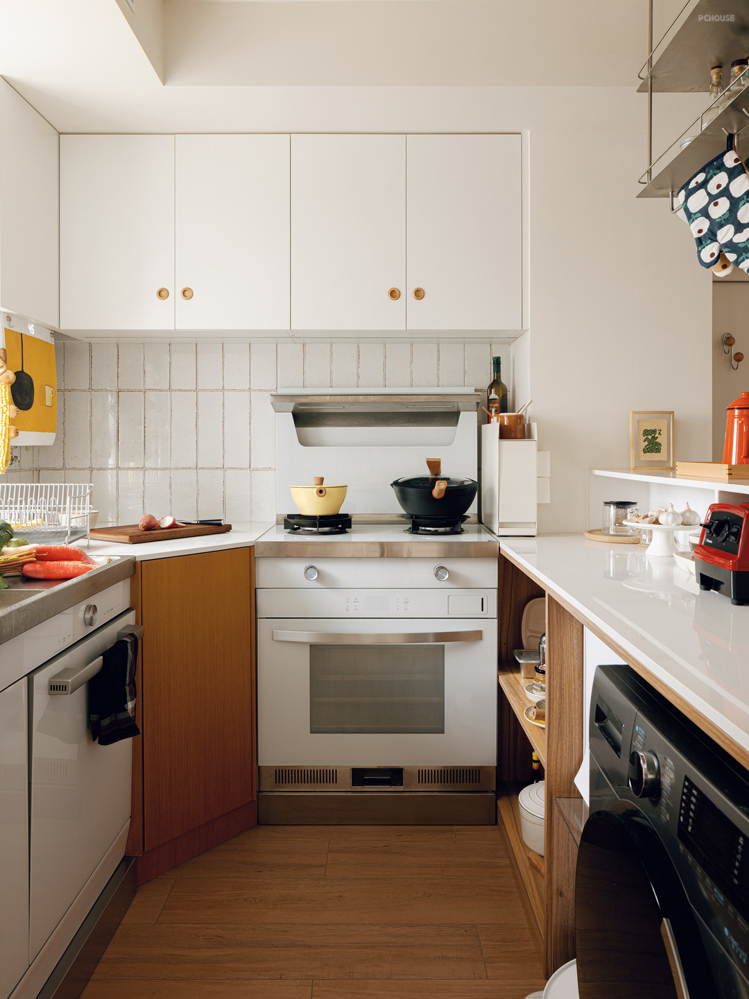 为了充分利用空间,为业主选择了集成灶的方案。洗衣机、洗碗机