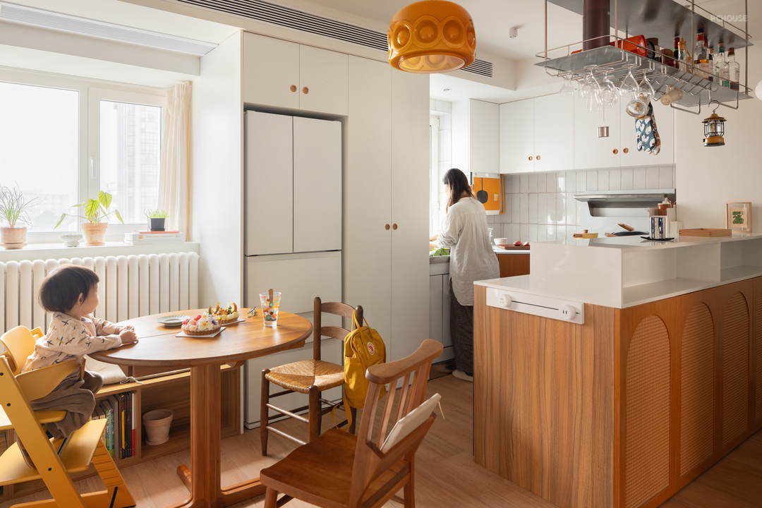 业主和我们都觉得,孩子应当是家庭生活的重要参与者,因此在空间的小细节里面,我们都进行了适合儿童的调整,以便孩子能够更加自主地探索与使用,充分发挥空间的亲子收育功能。