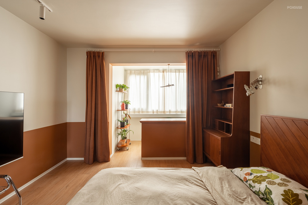 女业主特别喜欢中古风格的实木家具,我们为她选择了原木色系,以