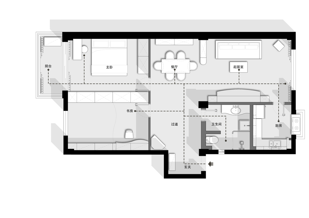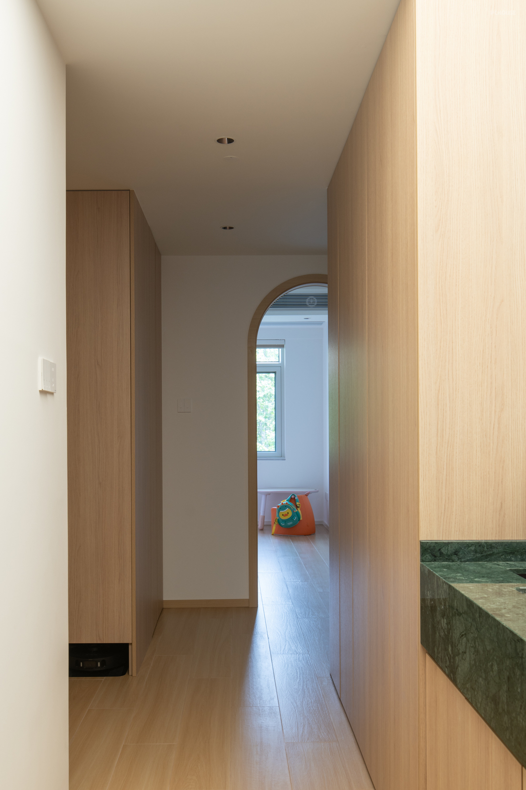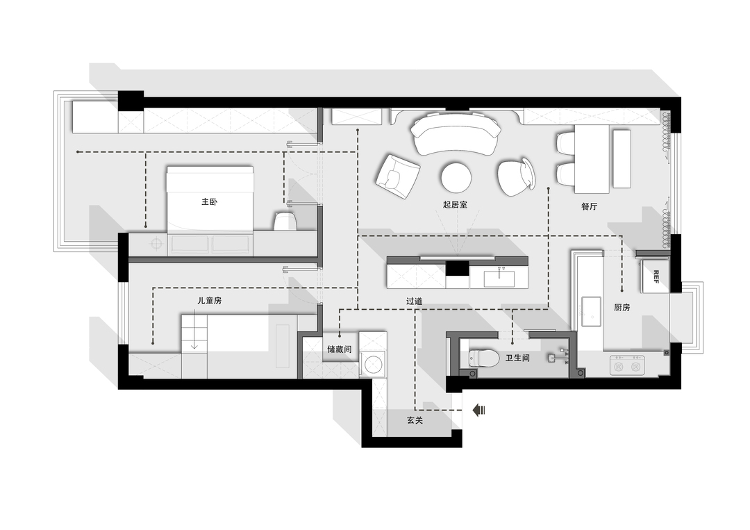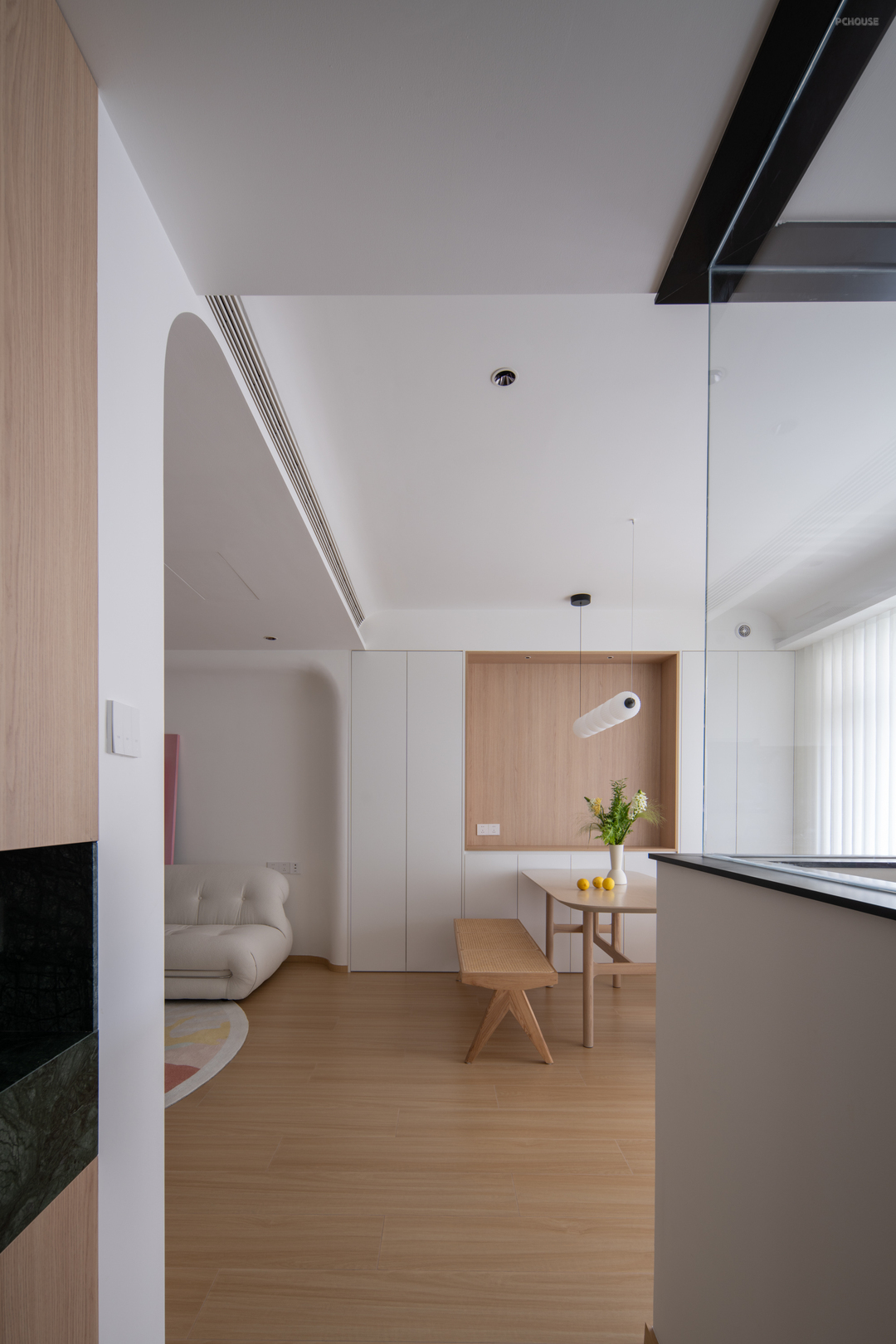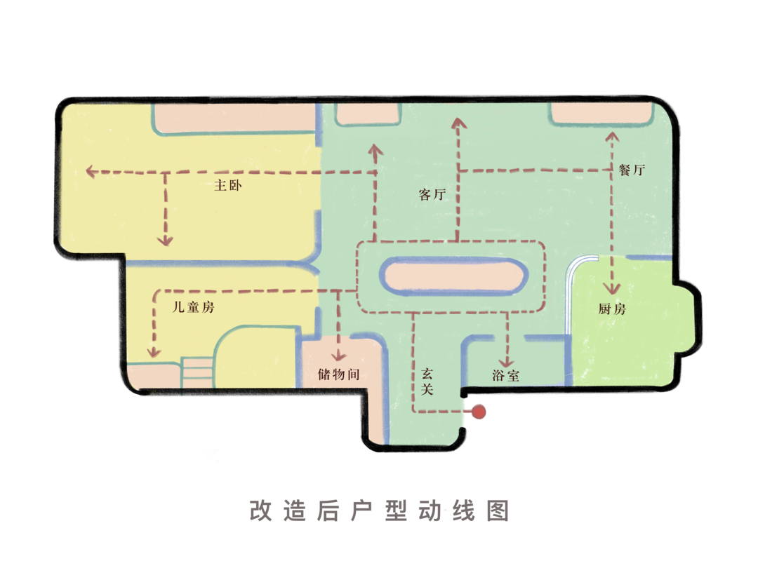 在最初设计沟通的时候,屋主提出了三个要求:希望可以打造温馨整洁、干净敞亮的小家,希望家中有大家坐在一起聊天的公共空间,同时也需要满足每位家庭成员个性生活的独立小天地。我们针对屋主的愿景,通过对空间的改造重组,成功营造出一个既整洁有序又动静相宜的居住环境,让这套二手学区房焕发新生。