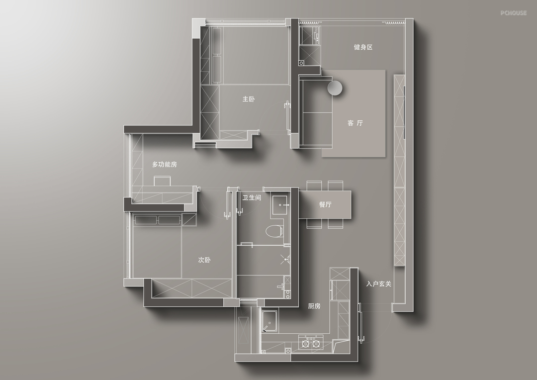 5. 主卧墙体内推,扩展走道空间,提升空间开阔感;