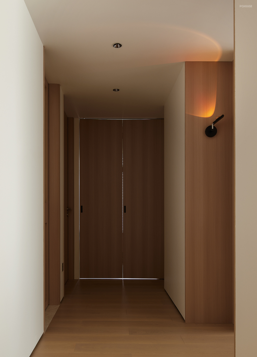 主卧墙体内推的巧妙布局拓宽了走道空间,行走其中更加自由舒展。更宽的墙体设计赋予入口星级酒店般的仪式感,每一次跨入,仿佛步入一个宁静的私人领域。