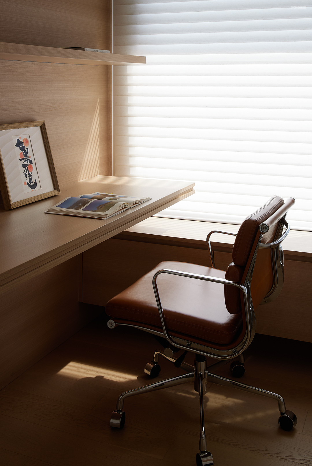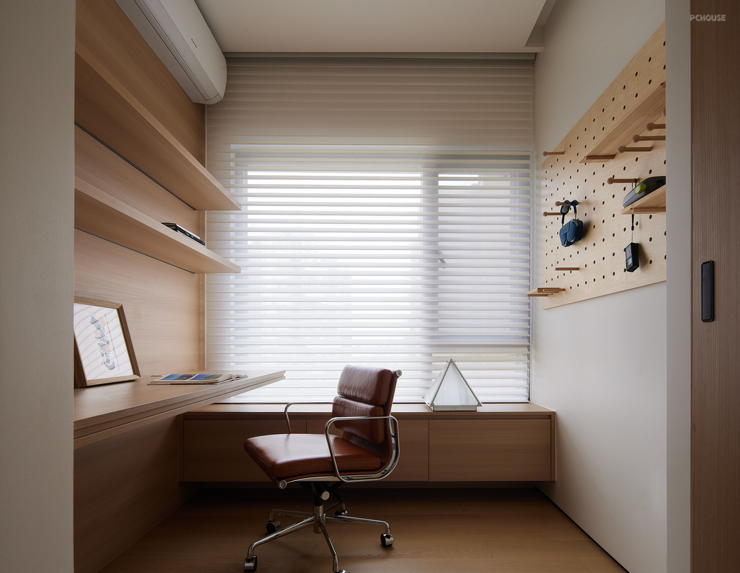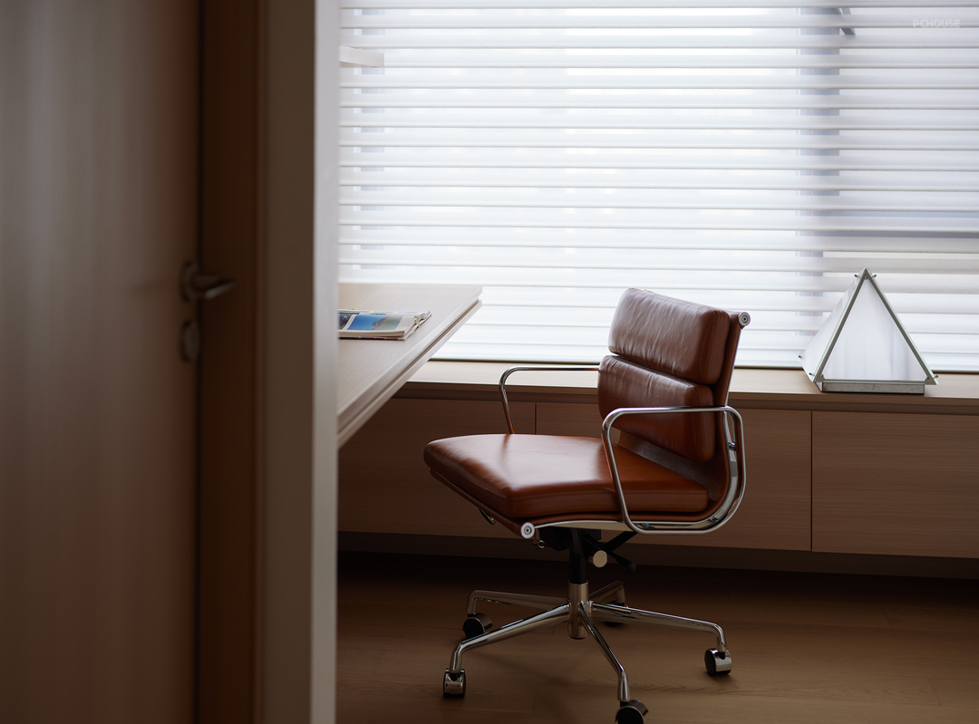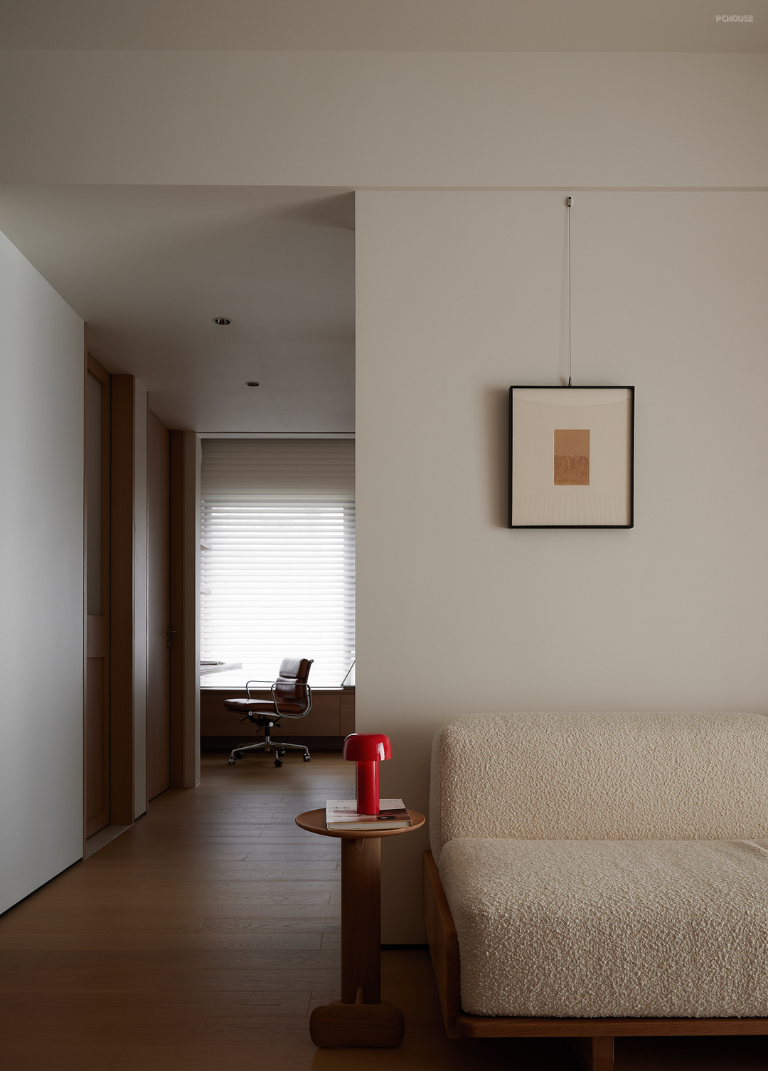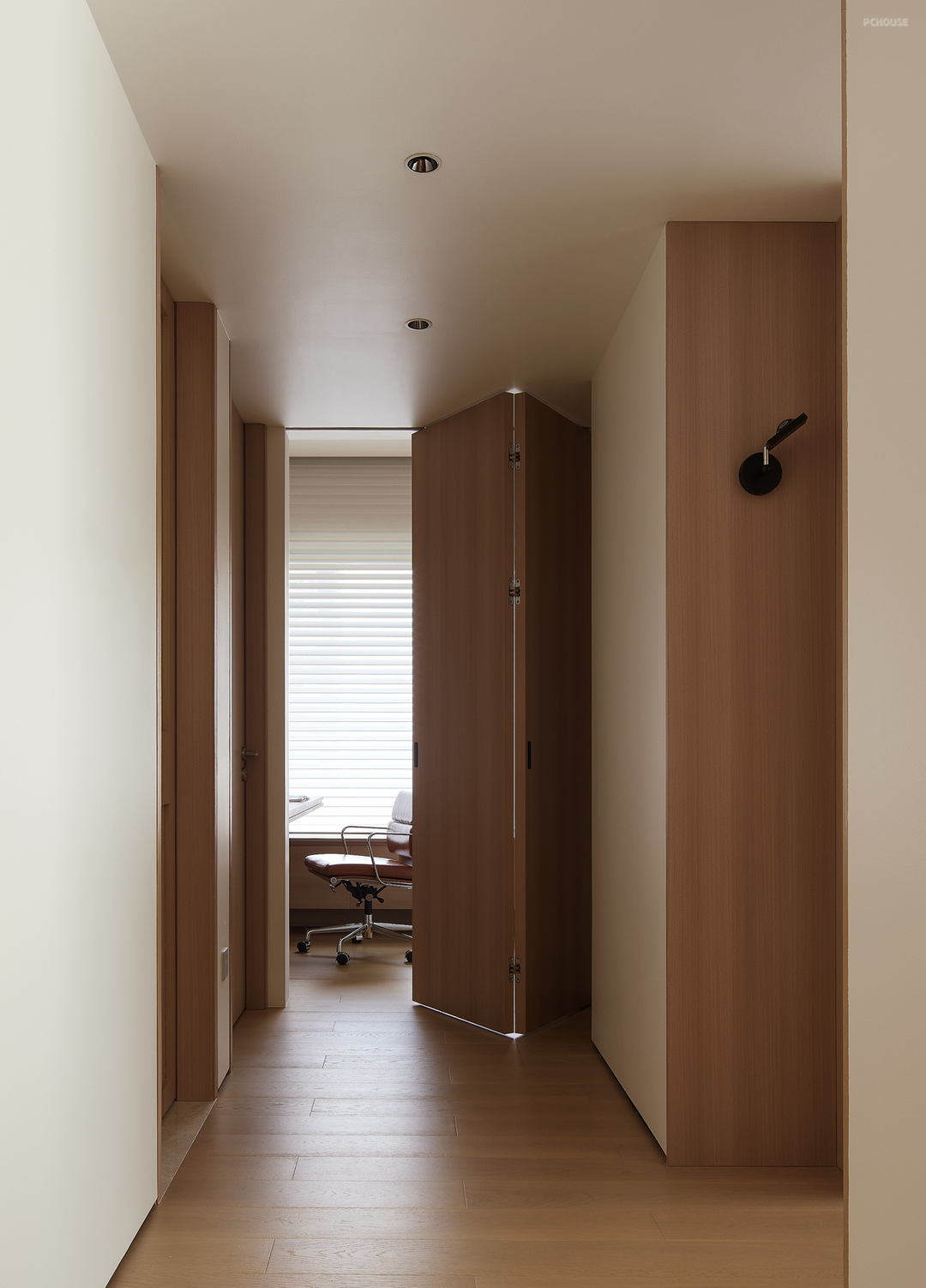 7. 书房采用折叠门,可全部收入与墙齐平,同时可优化走廊采光,提升明亮通透度,视觉上更显开阔不逼仄。