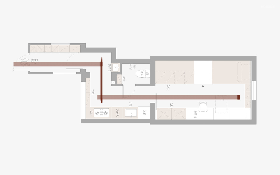 整体动线呈现"Z"字,沿着动线布置功能区