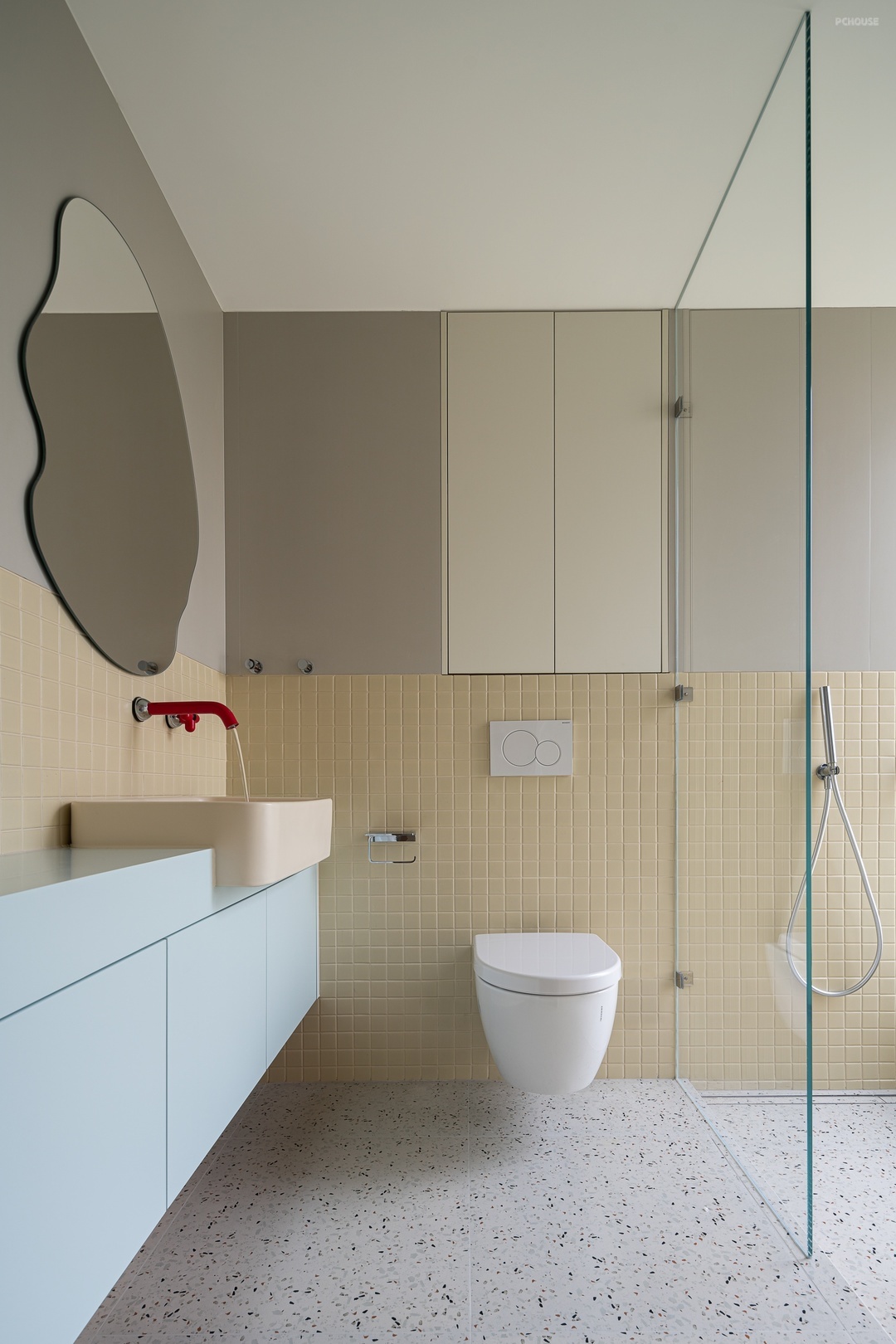 特别值得一提的是,客厅中还点缀了中国传统色——紫砂红开放格。这一抹鲜艳的红色,不仅为客厅增添了一份活力与热情,更将中国传统文化的精髓融入到了现代家居设计中。这种跨文化的融合与创新,正是折衷主义风格的精髓所在。
