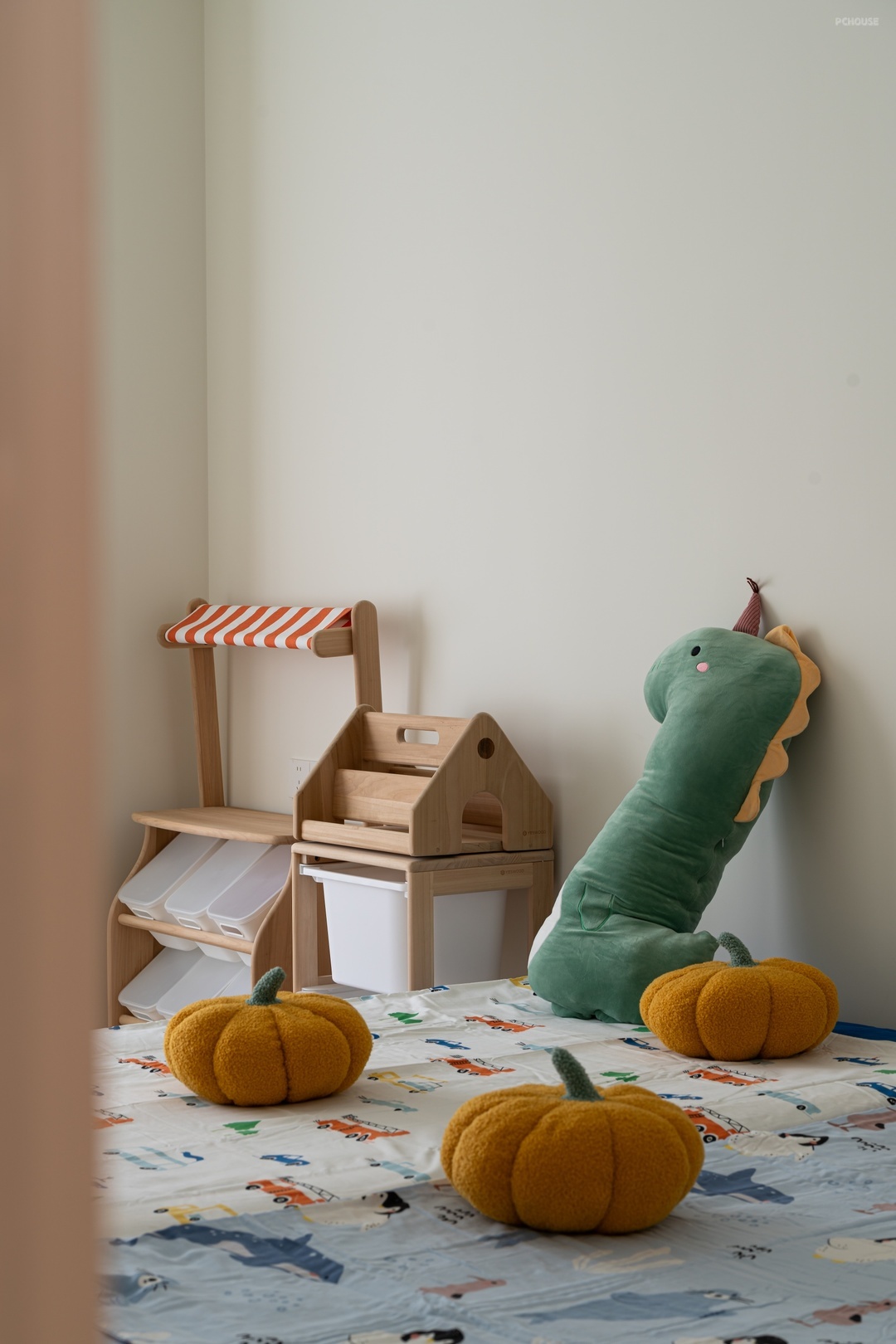 走进这套装修案例的客厅,首先映入眼帘的是其开阔而整洁的空间布局。这里并没有传统的电视和沙发背景墙,这样的设计不仅让空间显得更加通透和宽敞,也鼓励了居住者更多地关注人与人之间的交流与互动。客厅中央摆放着一组像素沙发,其独特的造型和柔和色彩不仅为空间增添了活力,还非常适合亲子活动。想象一下,周末的午后,一家人围坐在沙发上,一起观看电影、玩游戏,这样的场景无疑充满了温馨与欢乐。
