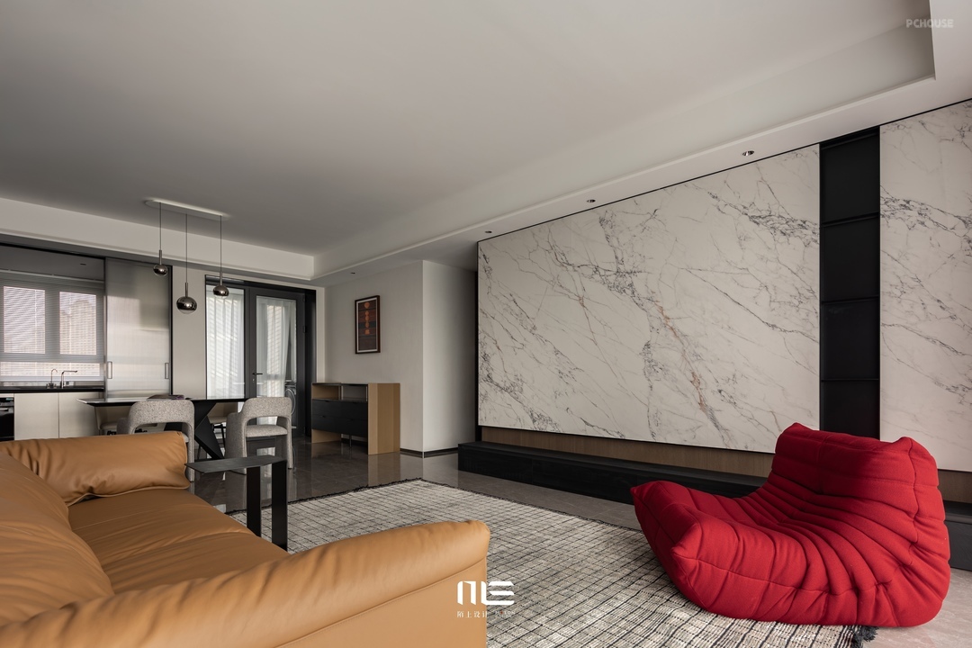 红色的懒人沙发无疑是整个空间的点睛之笔,鲜艳的色彩瞬间打破单调,带来一抹灵动和活力。它不仅是一个舒适的休憩角落,更是彰显个性的独特存在。