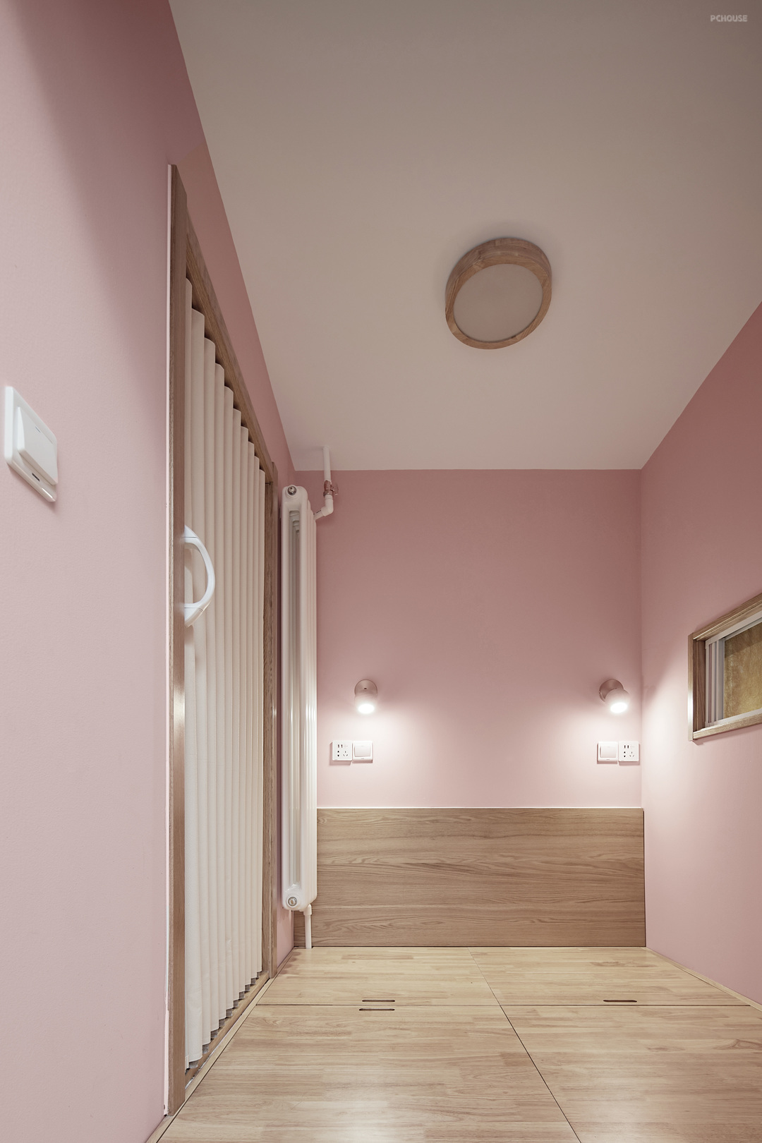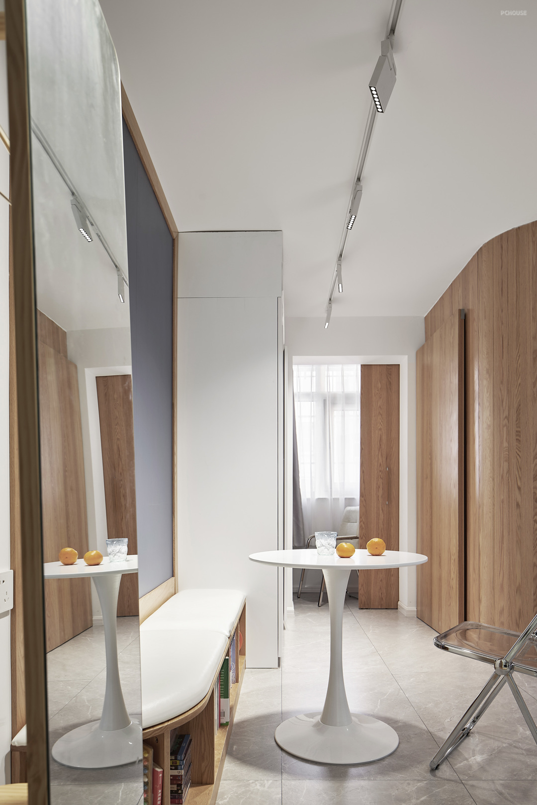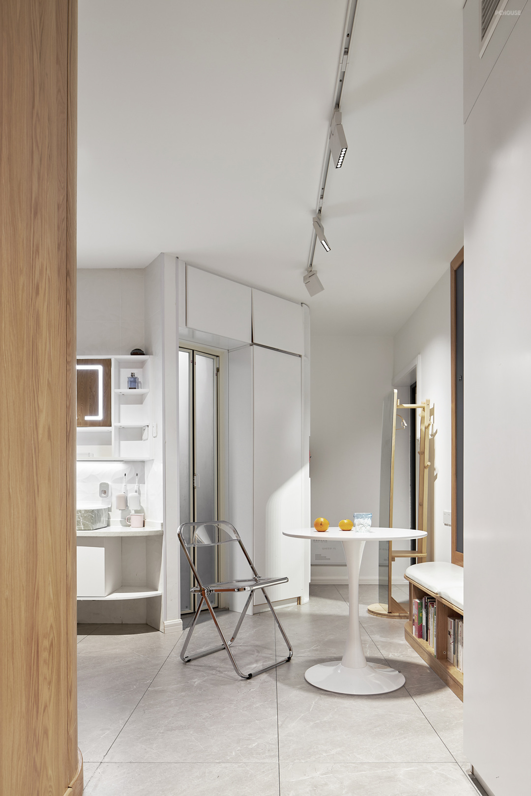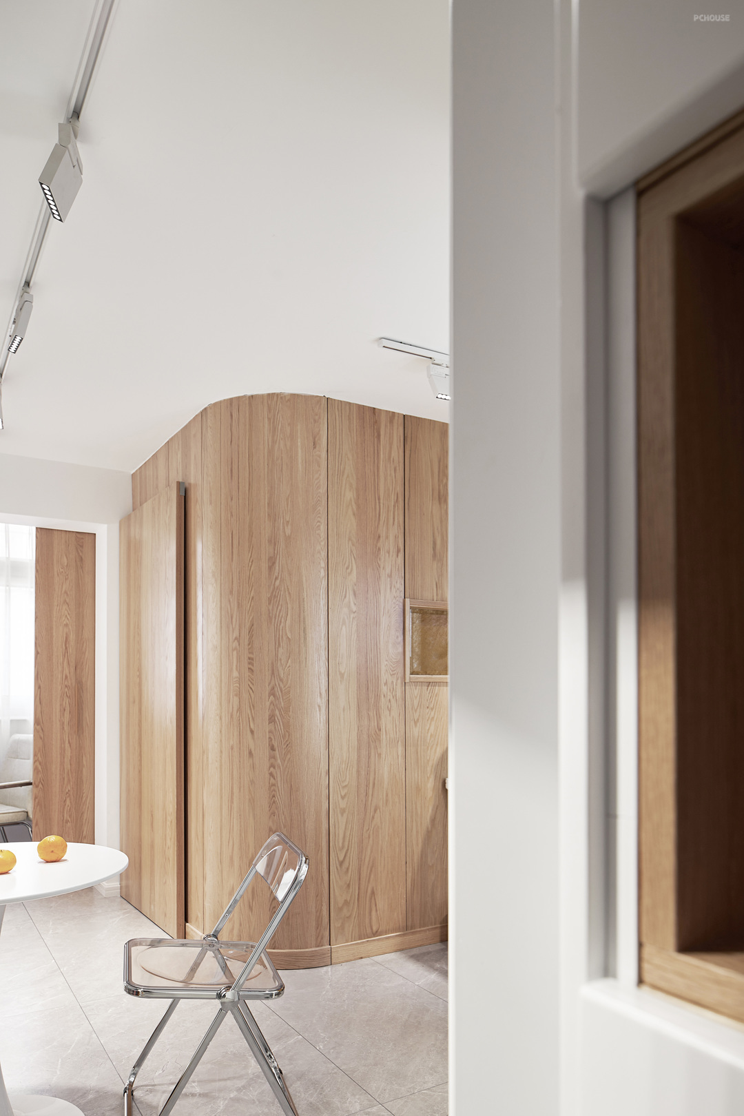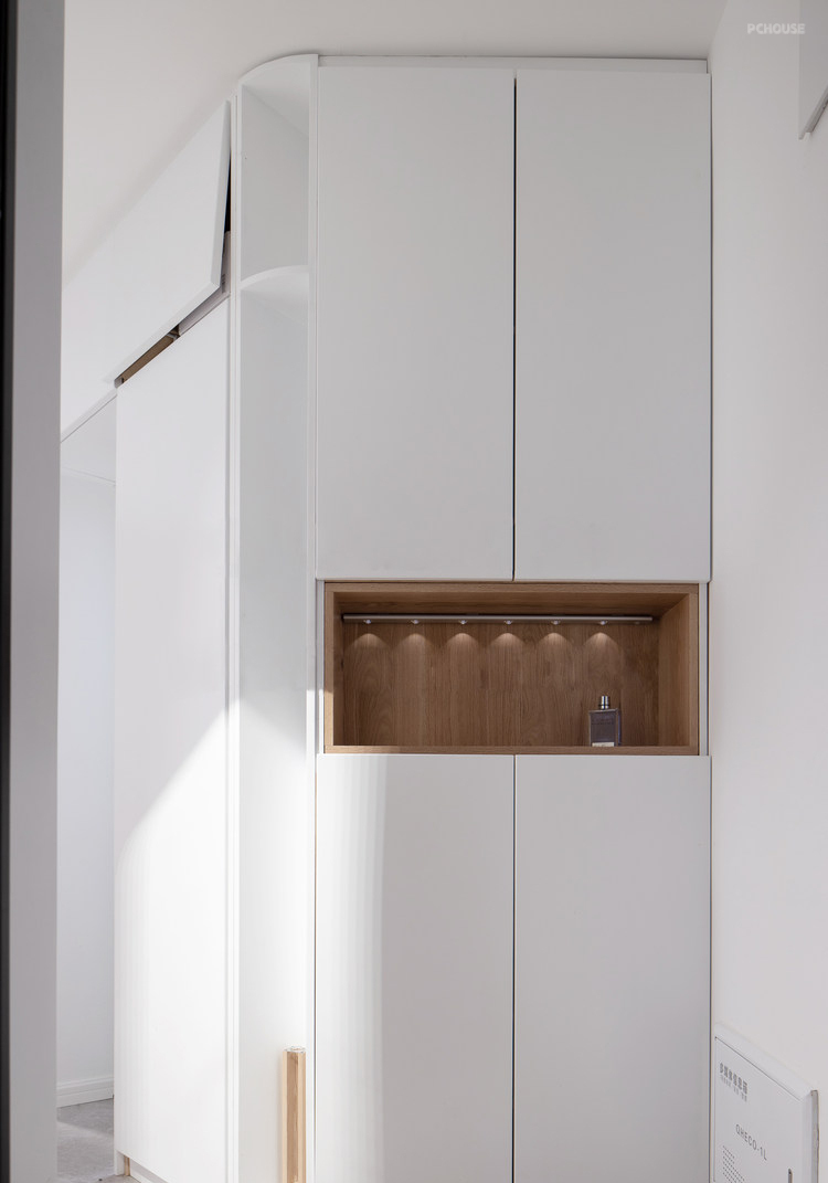 图2:空间以大量的白色为底,突出家具在空间中的功能性和体量感,次卧对面的通顶柜,满足了次卧的储物需求