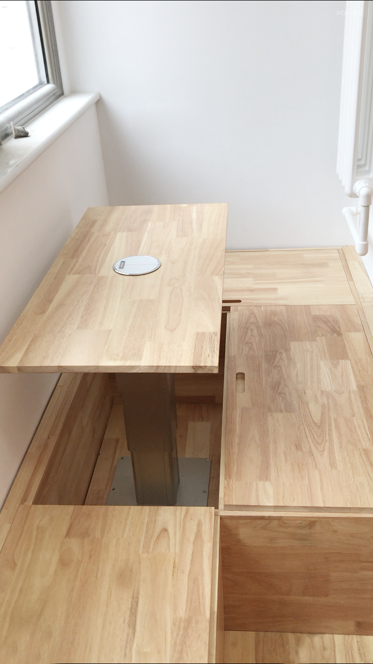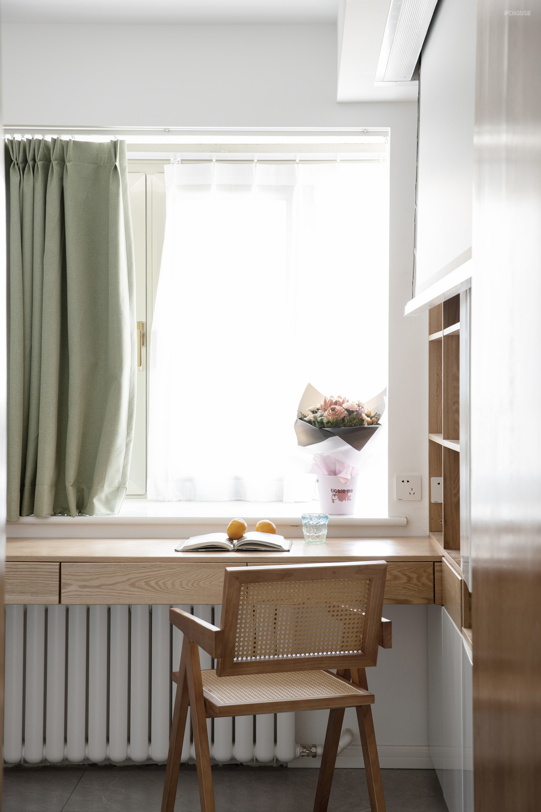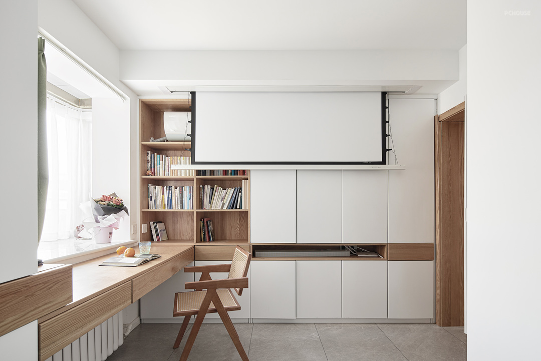 靠近窗户采光好的地方做办公空间,工作效率大大提升,投影幕布的使用,实现了躺在床上看电影追剧的幸福时光!