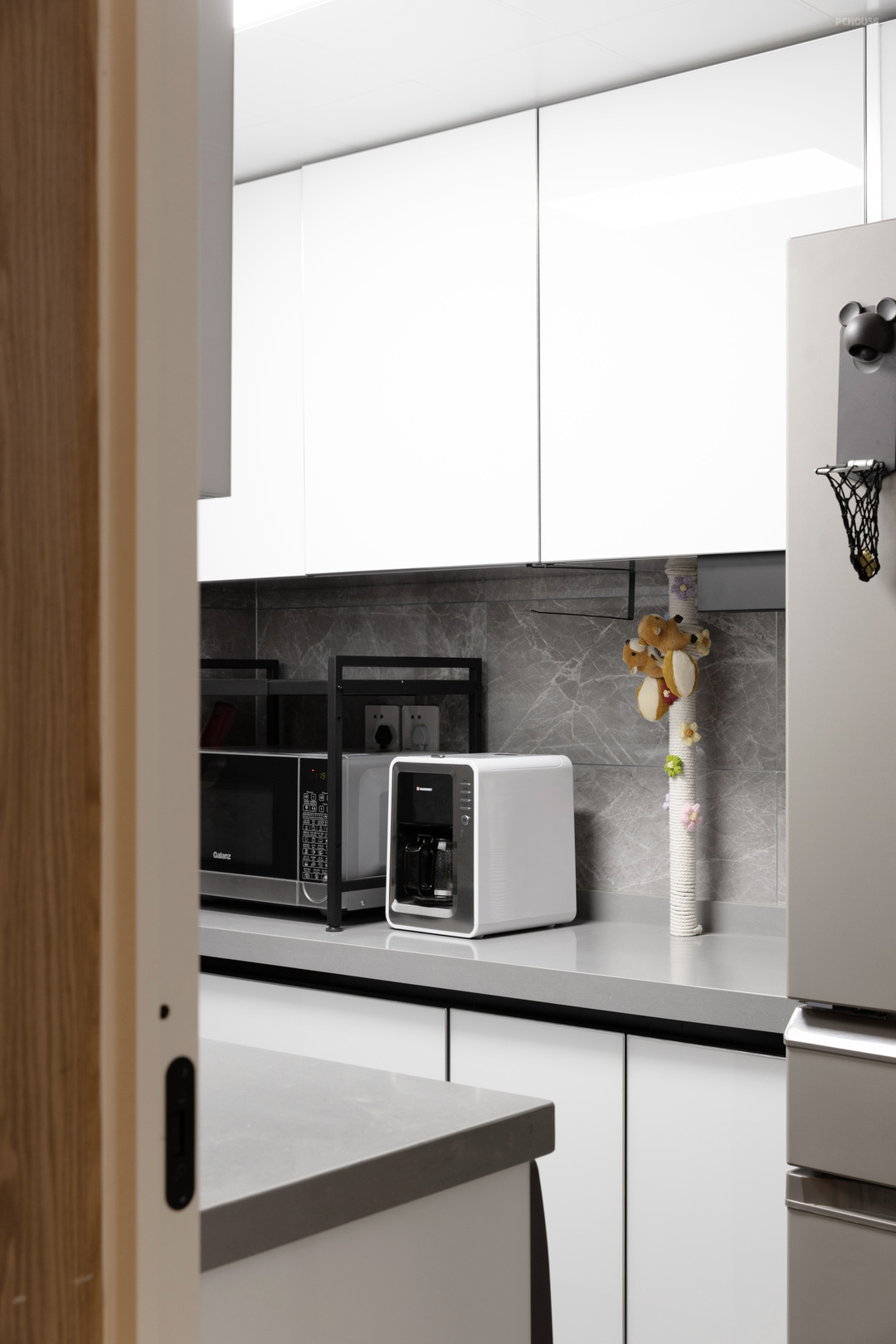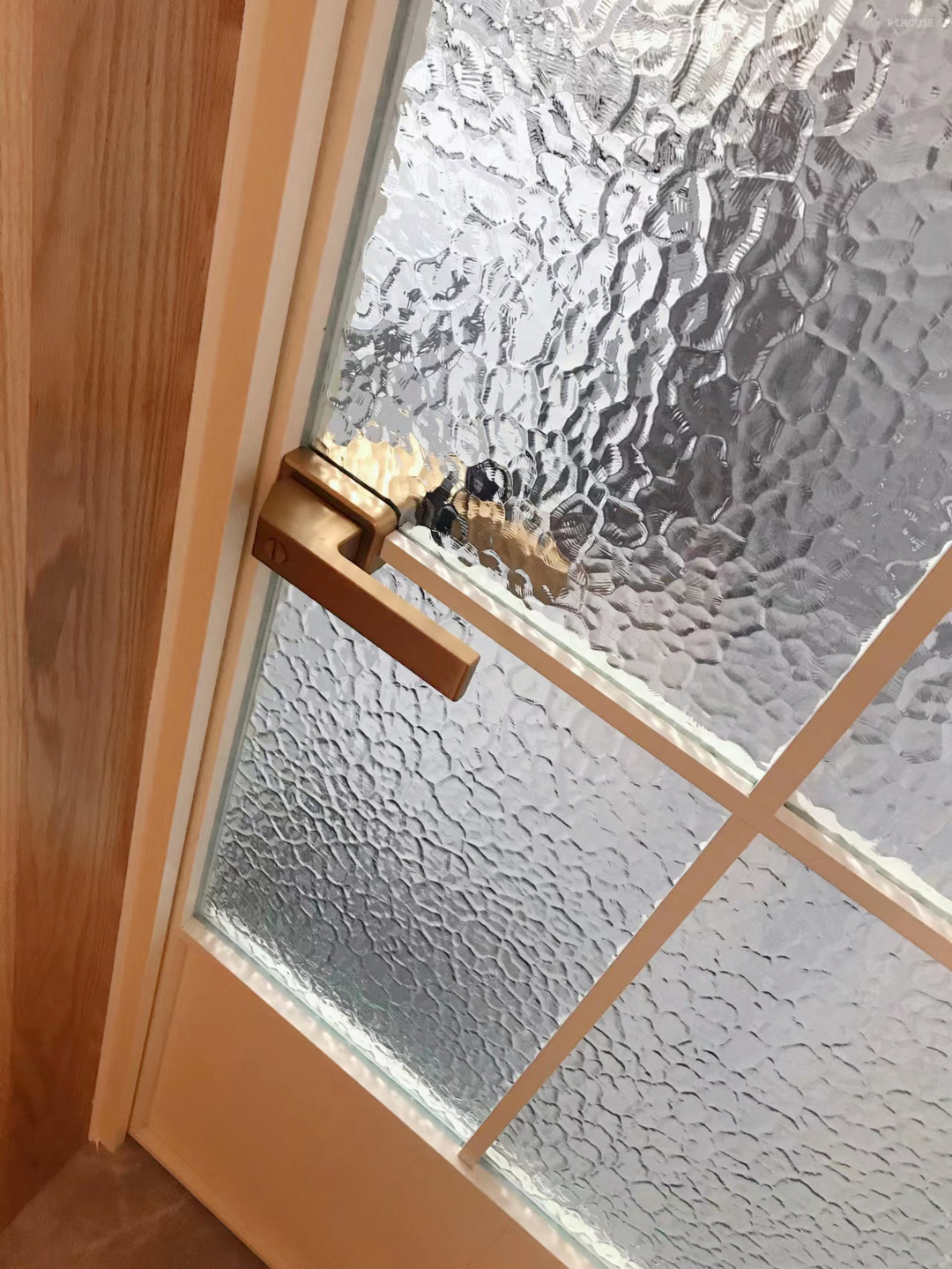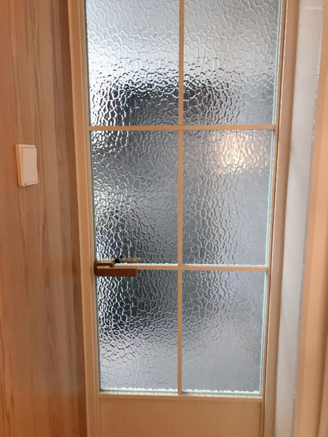 厨房门用了白框水波纹玻璃,黄铜把手,喜欢的赶紧安利起来