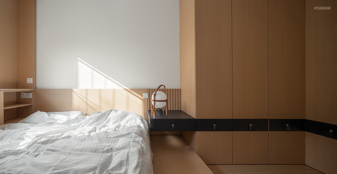 各空间通过不同形状的柜体置入,满足日常的储物需求