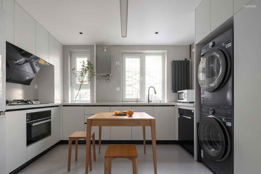 2:将餐厅空间融入厨房,功能的合并增强了两个空间里边人与人之间的互动,劳动的价值被放大