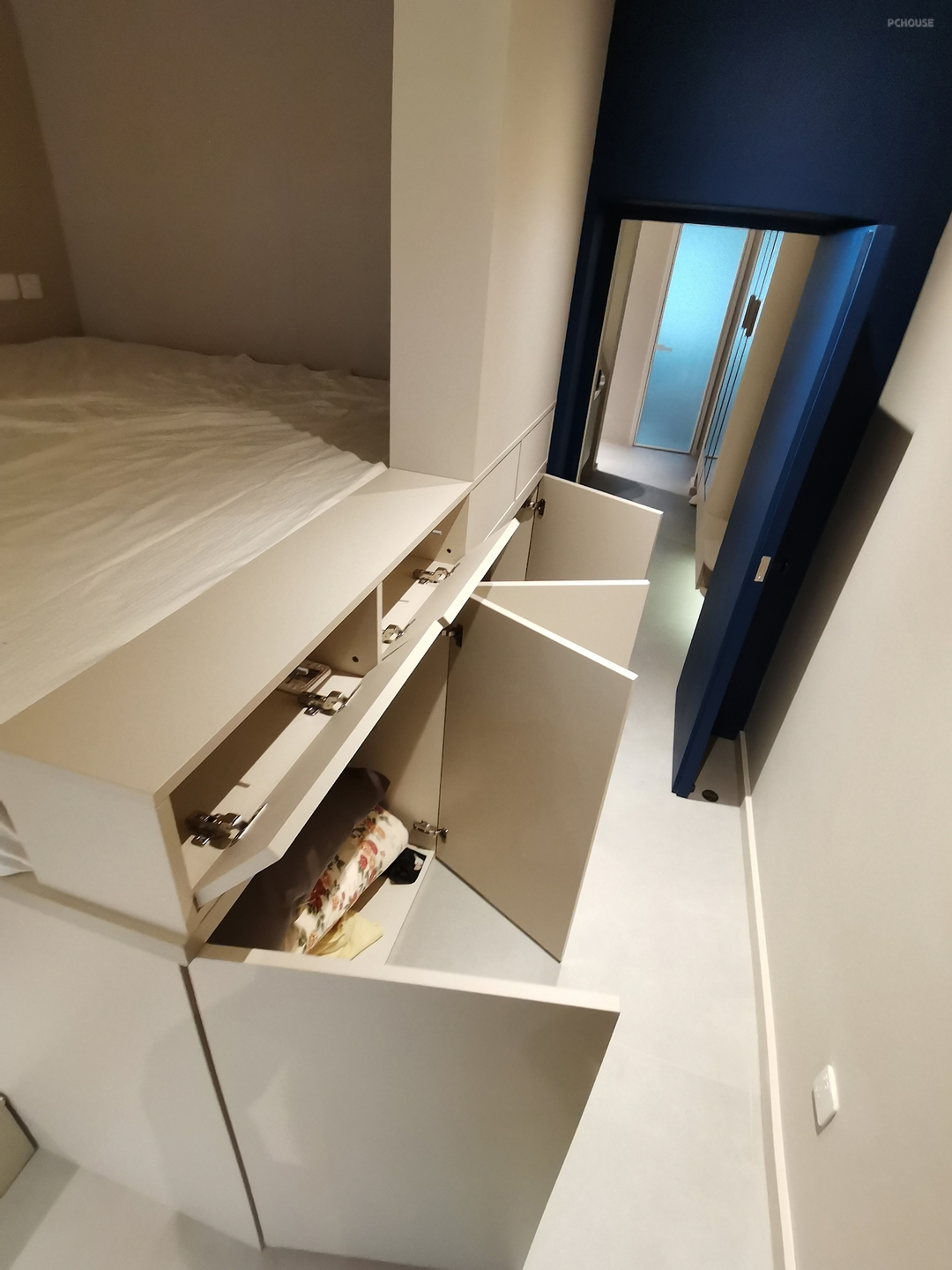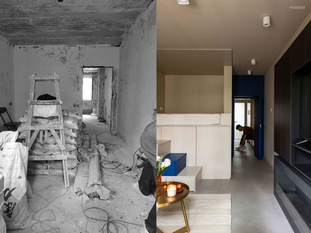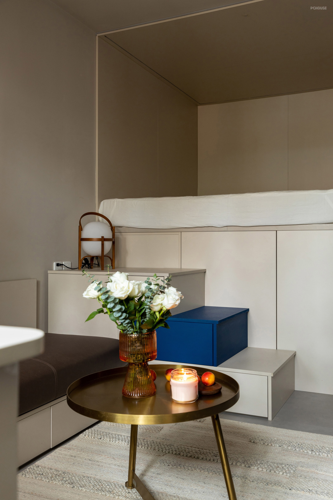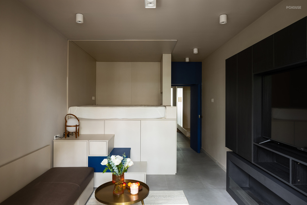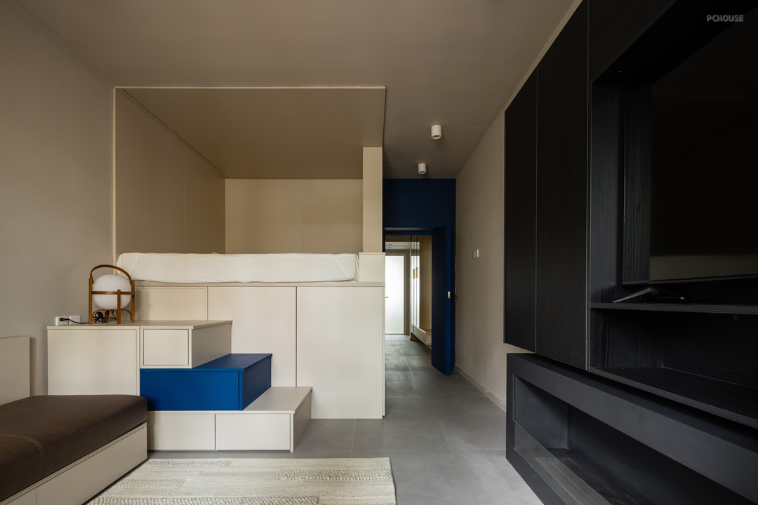 5:由于睡眠区利用多功能盒体的方式设计,不占用空间,轻松留出小客厅活动区域