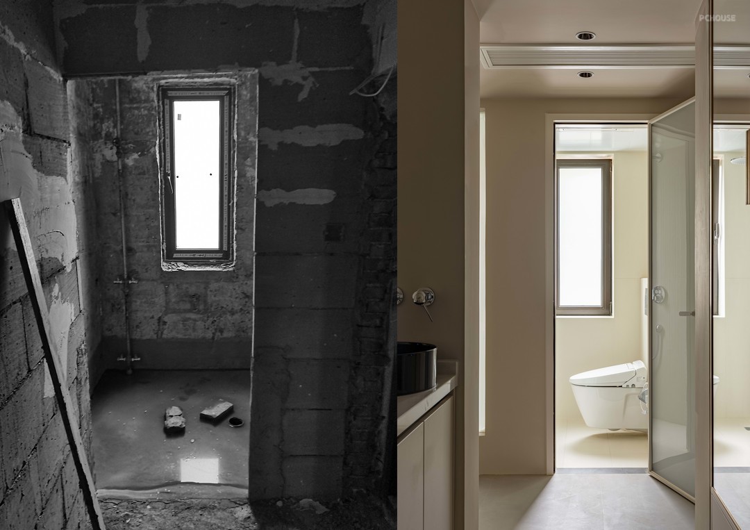 2:重新规划进厨房的动线,把原来浪费的面积做洗手池,实现“干湿分离”提高卫生间使用效率