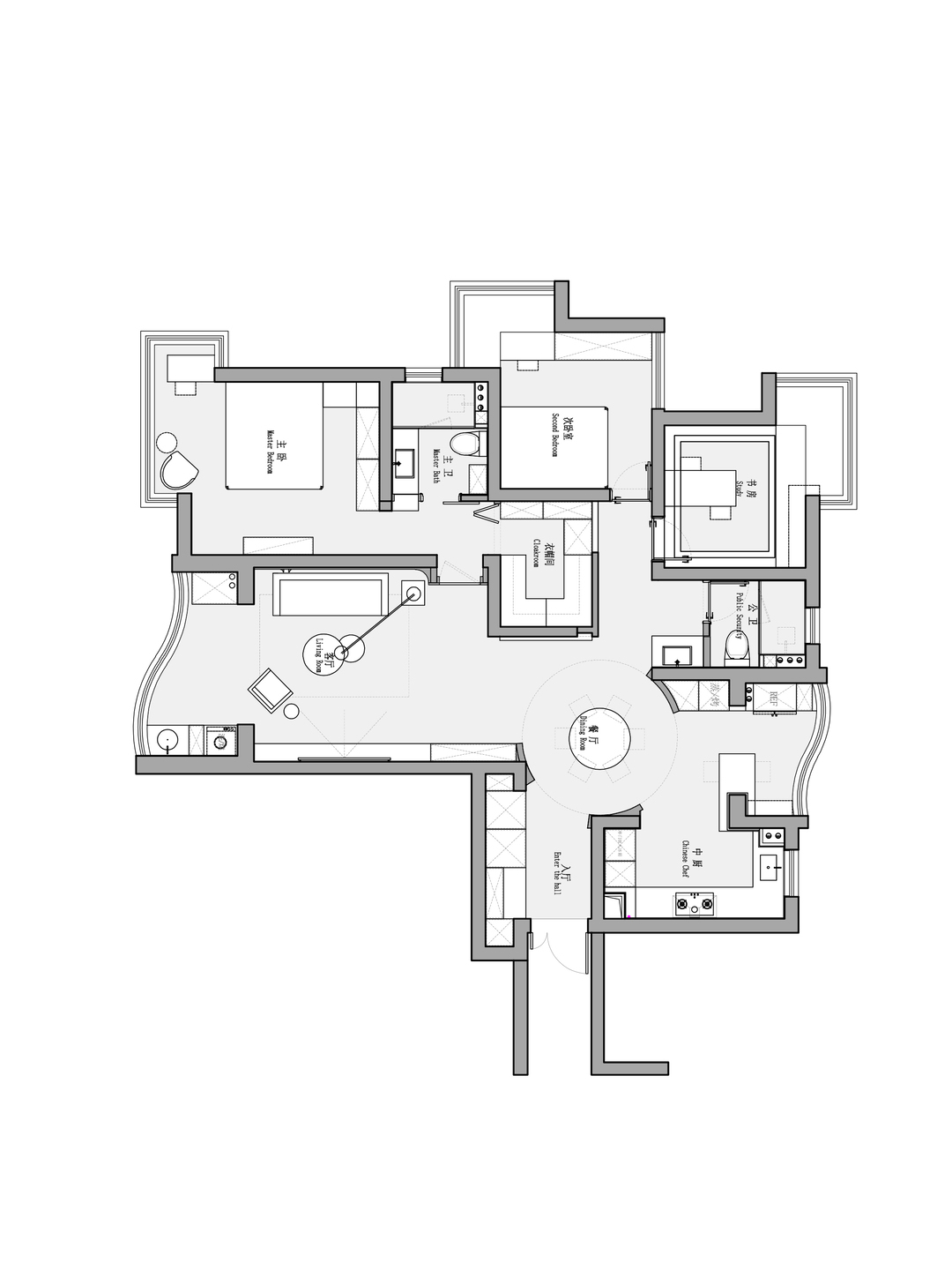 2.功能混乱:功能区界定模糊,动静未分区,居住私密性、舒适性受影响;厨房、餐厅等布局也未优化,操作动线不合理。