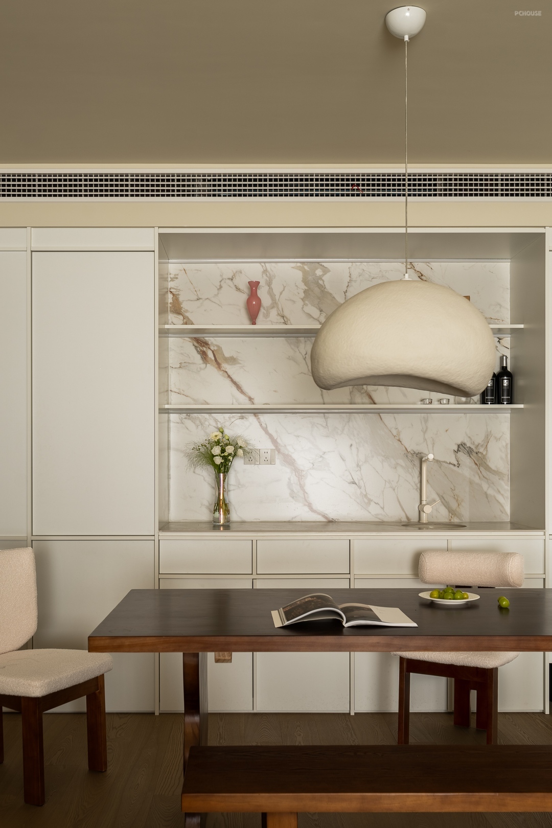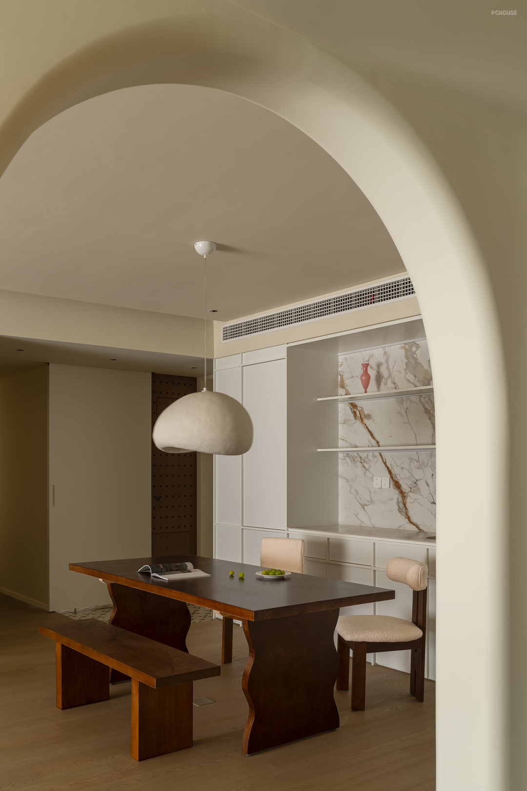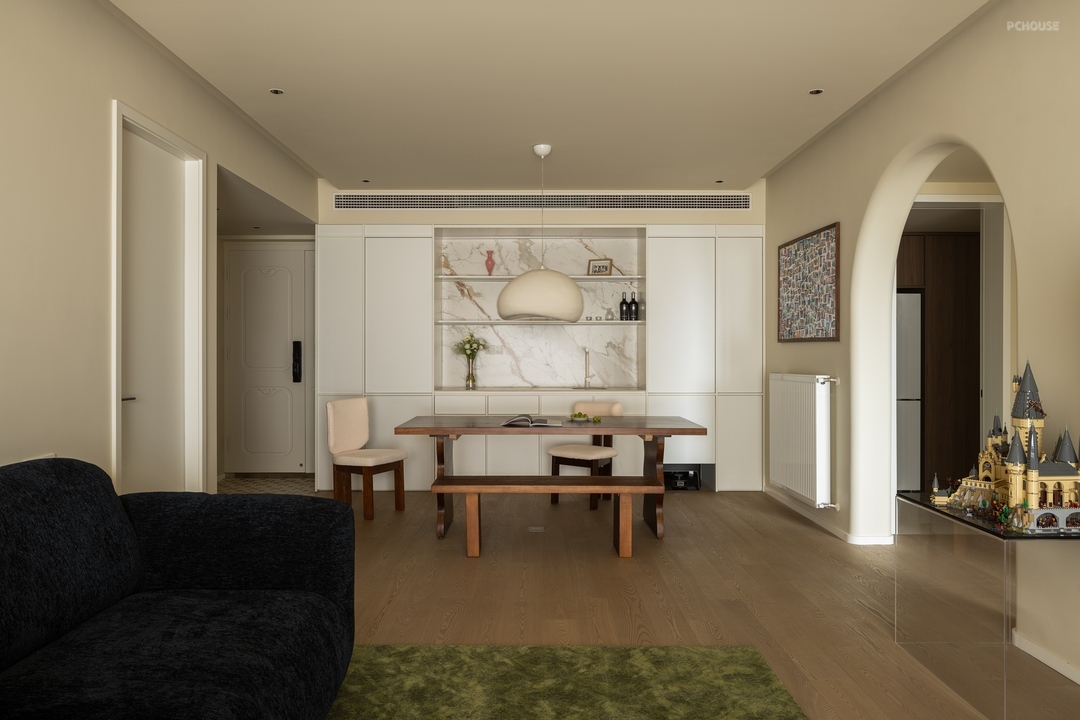 这间150㎡的二手房,承载着一对年轻夫妇对理想家的务实想象。屋主对空间的诉求清晰而克制:保留西厨的烟火气,预留儿童房的成长余量,让每件家具都能随生活状态自由迁移,创造一个让他们能呆得住的家。