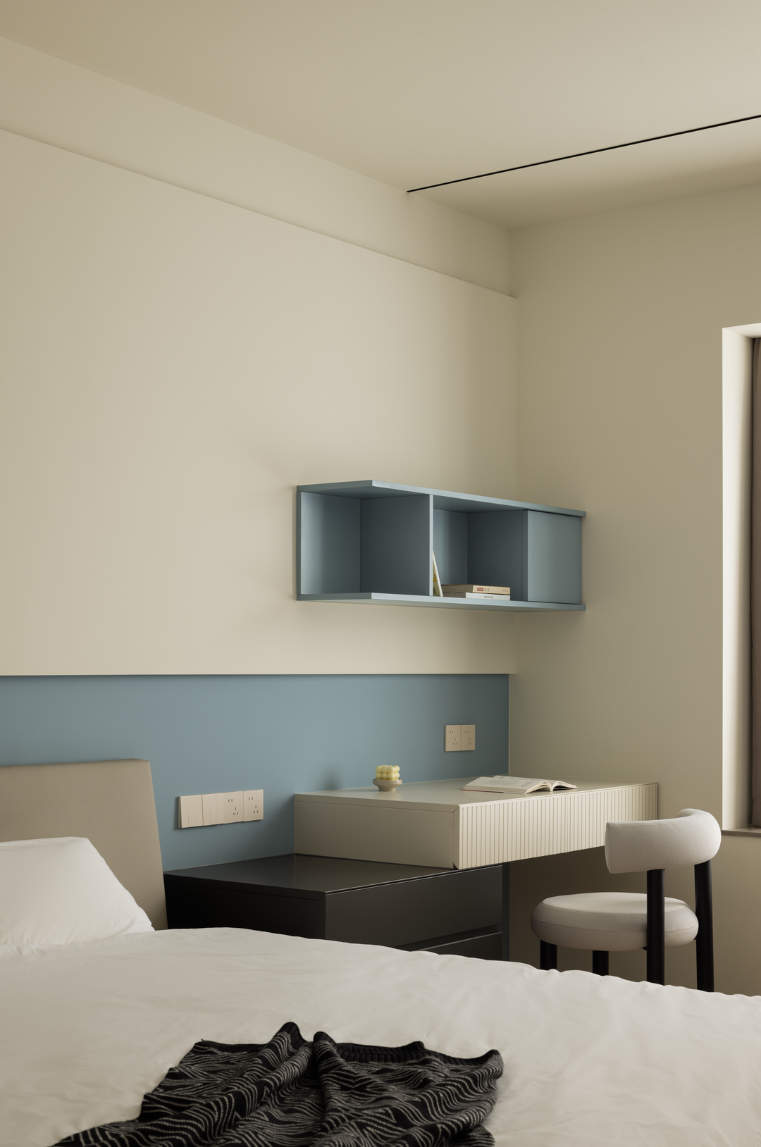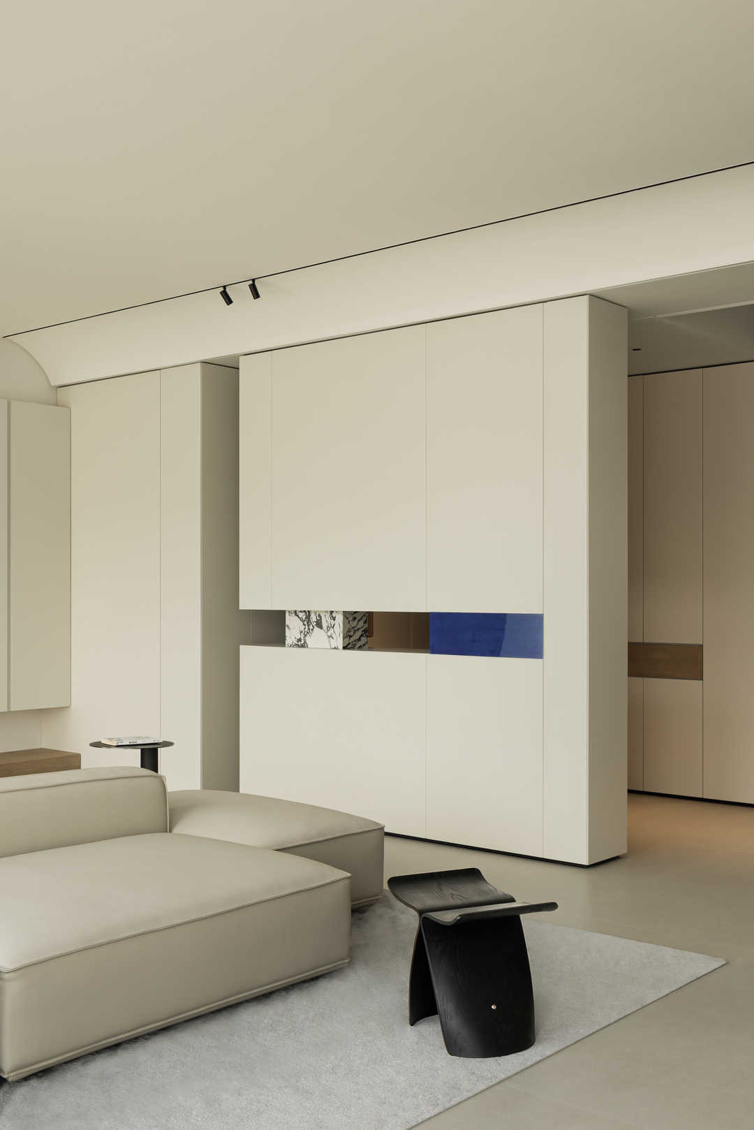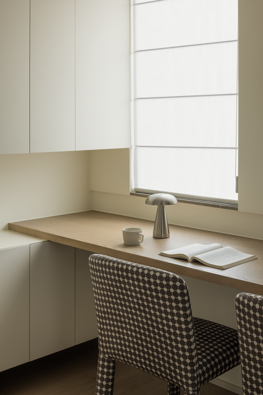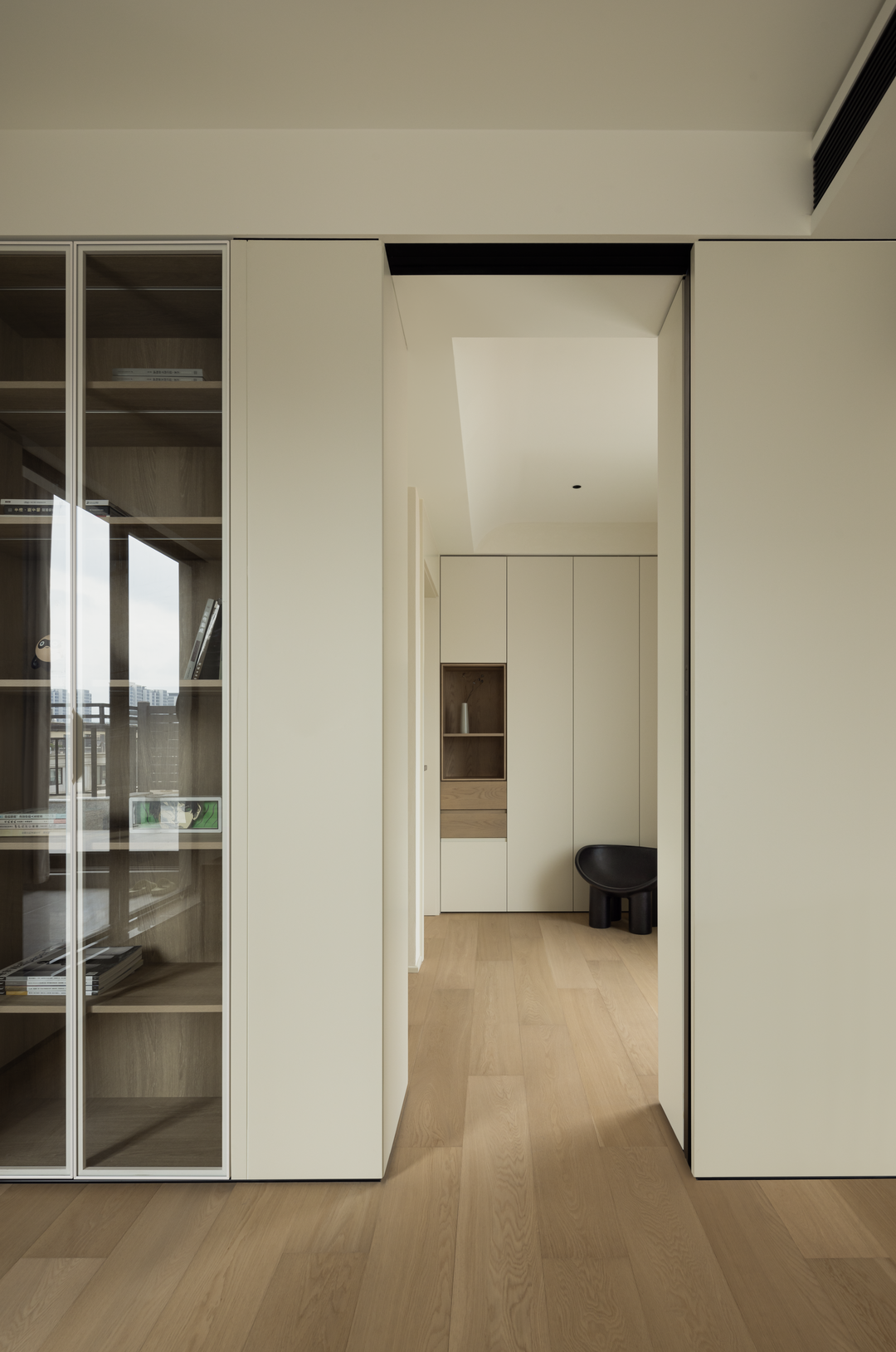 这里既是静谧的阅读办公角落,又通过柜体与空间柔性分隔,维持整体通透感,实现静谧与灵动的平衡,为心灵留一方「栖息天地」。