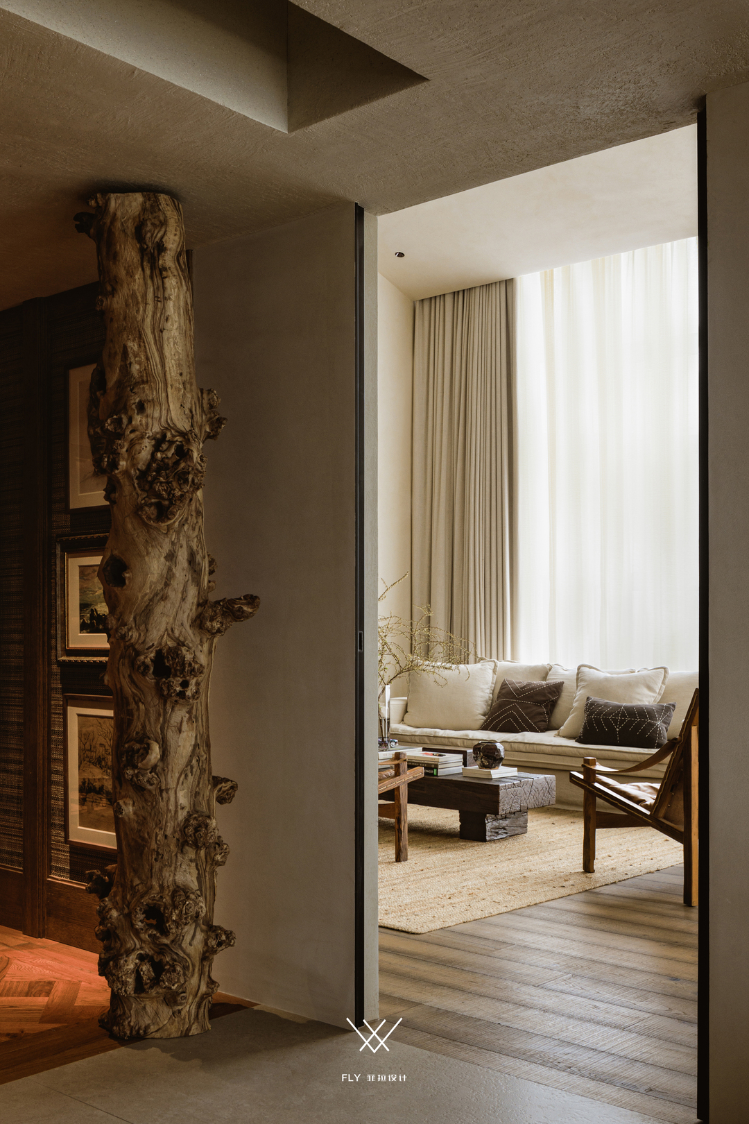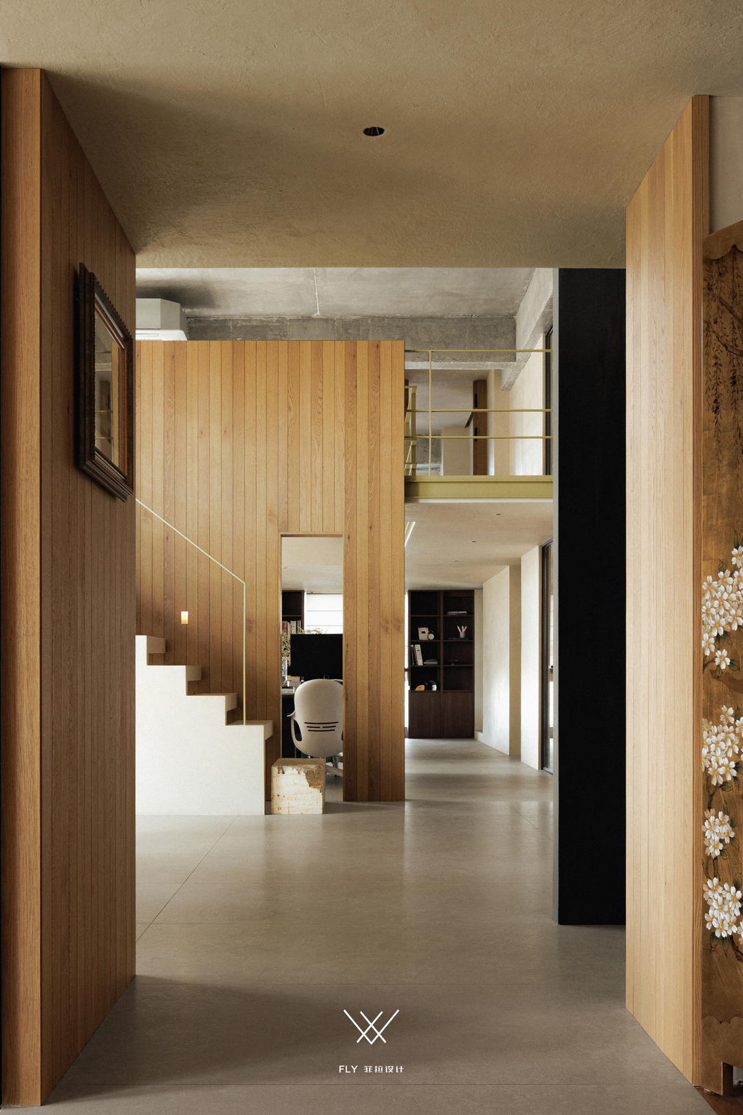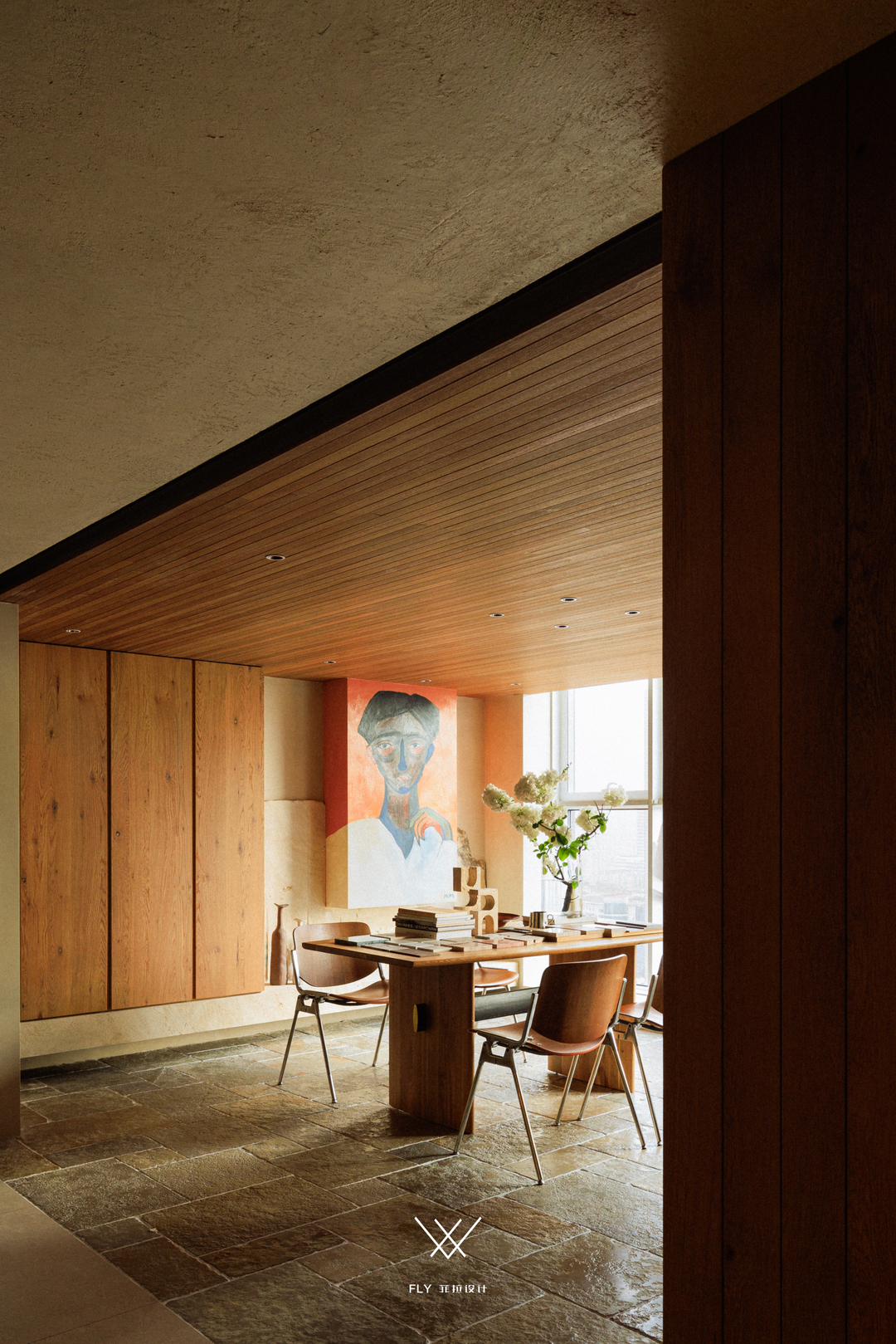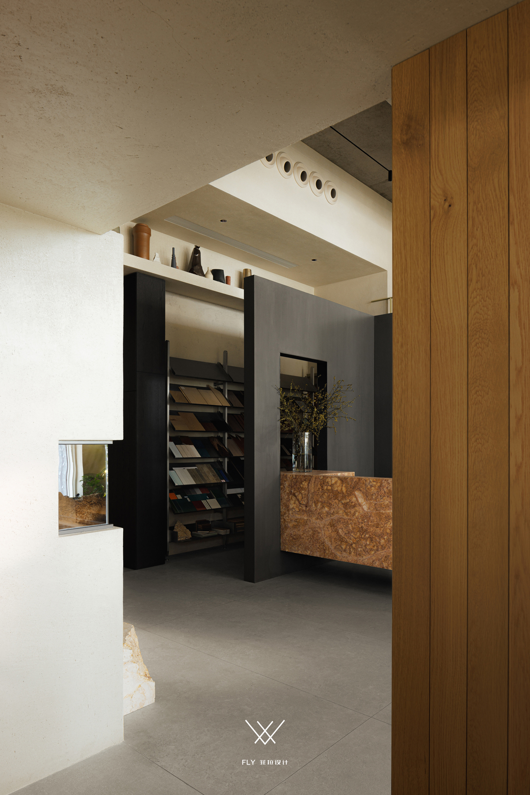 无论世事如何变迁,人追逐自然的渴望未曾减退,身在闹市,总向往着峰林之间的虫鸣鸟啼、树石水潺,一草一木都能唤醒内心的静与美。宋老师希望办公室就是具备这种属性的空间,让人感受到平和与自由,拉近身之所在与心之向往的距离。采集山石林木元素应用于室内,顶面铲掉白灰保留清水混凝土质感,空间散发着随性、原始、自然的气息,让内心寻得一份归属感。空间内自然的曲调悠扬,也有着人文的细吟。