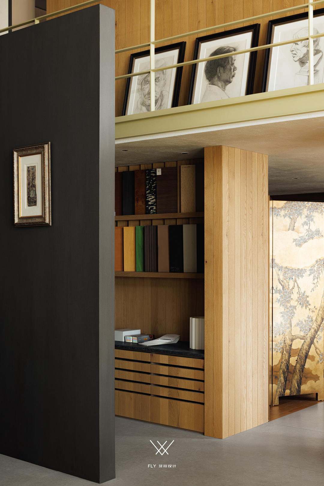 前台台面的一侧支撑角是一台已经下岗的减速机,老物件在新的空间重现风采,记忆拉扯着故事细语,让我们在快节奏的生活中放慢一些、轻松一些。宋老师年少时期包含从初中、高中到大学作画的手稿都有收藏,挑选了部分做装裱在办公室内随便可见,贯穿着成长的记忆散布在空间的各处。