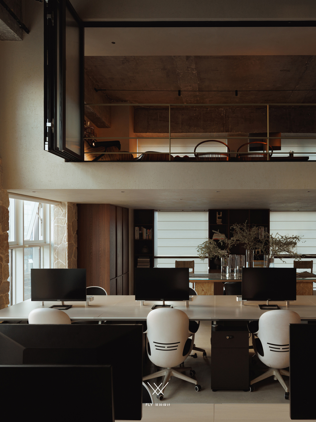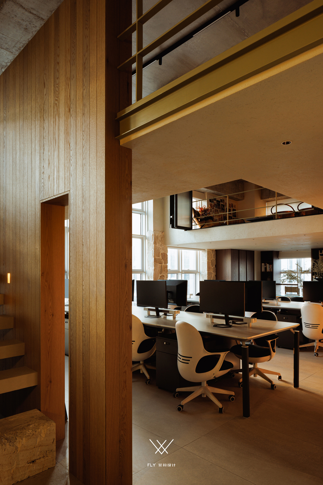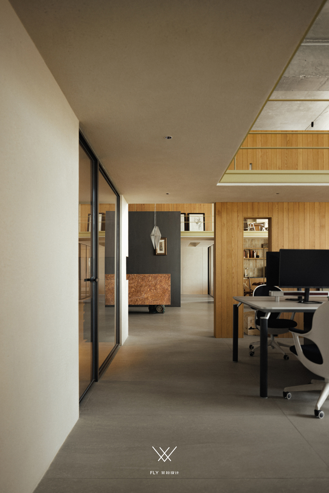 在快节奏的生活中,办公室已然是我们的“第二家园”,它于我们而言,不是冰冷机械的工作空间,而是有着那份独属的归属感——家的温馨、心灵的舒缓,在工作中享受生活,感受生命的热忱不局限于下班后的单行线。与大厅相邻的办公区同样做挑空,开阔的层高通透的不仅是视野,也抚平着每个疲惫烧脑时刻的心灵;