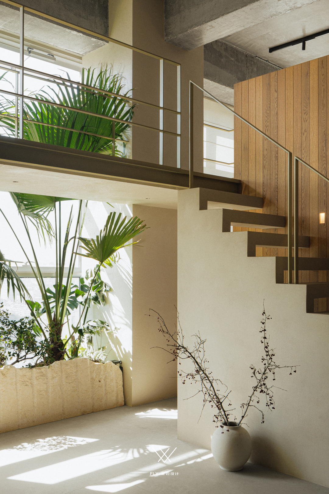 前言: 这几年受疫情与金融波动影响,社会下的人们背负着更多的压力与困惑,内心踌躇不安,宋老师以自然为引,结合多种自然元素触及生活的原始与本真,自由灵性的空间让身处其中的人寻得舒缓与平静,对于我们来说虽是办公空间却不乏那一份属于家的归属感与安心;一个兼具功能性的办公空间与精神性的艺术空间吸收着万物灵气葳蕤生香。