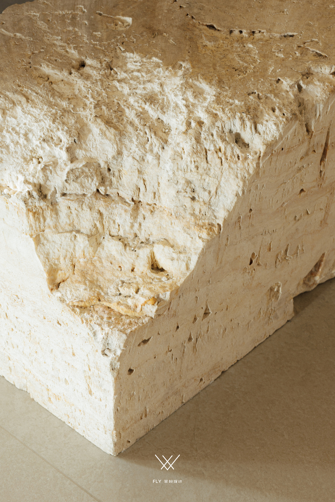 如乡村地面青石板般粗犷的地面进口莱姆石增加空间的自然原野感,随着时间的推移,脚步与莱姆石的摩擦会慢慢让它更加莹润、越发细腻光滑。