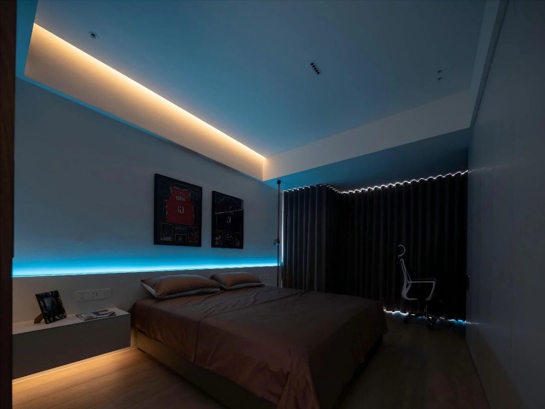 男孩房设计的电竞灯光,满足男孩子的电竞梦想。
