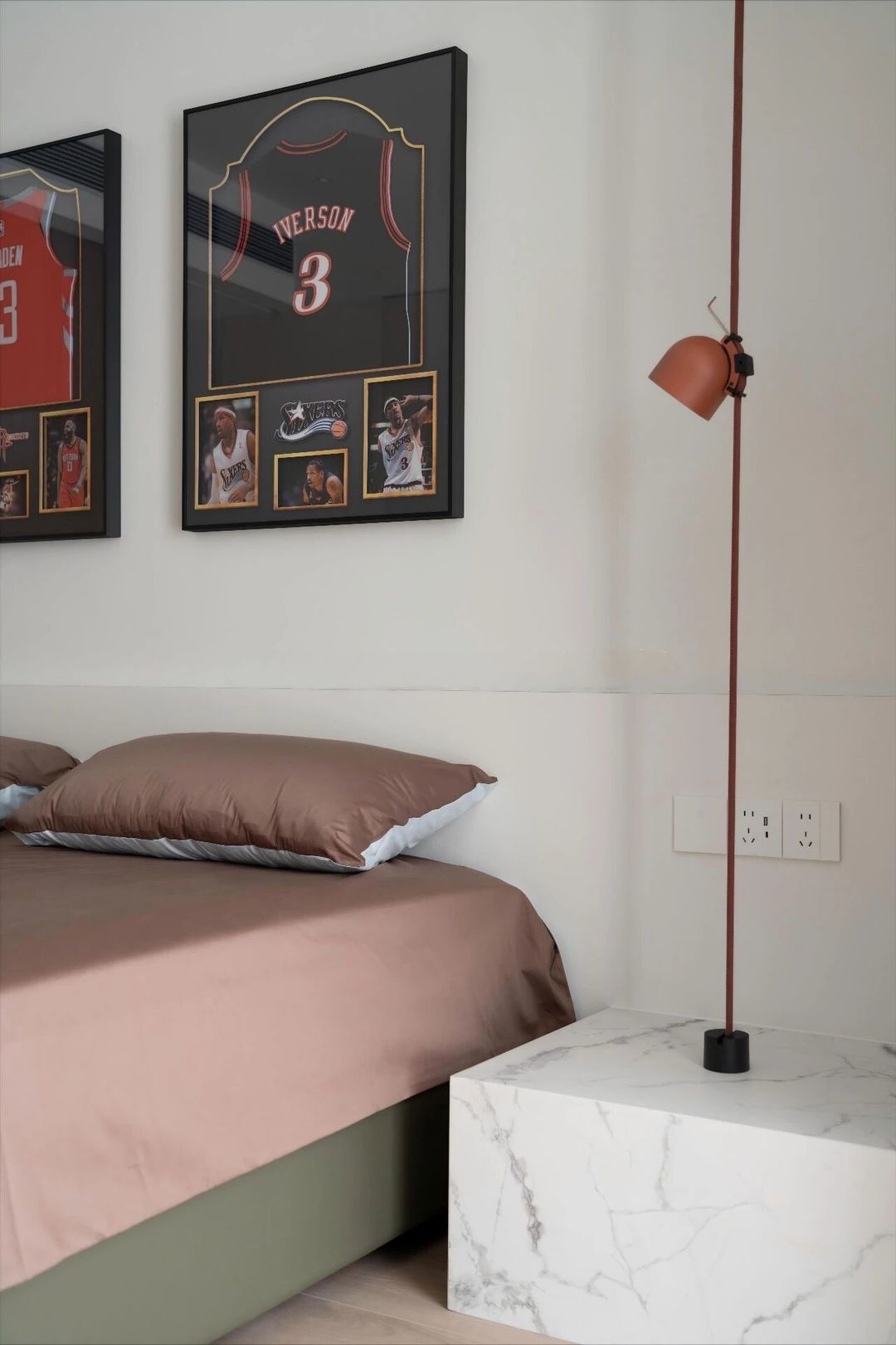 床头柜结合全屋定制去设计,节约空间的同时也会显得更整体协调。