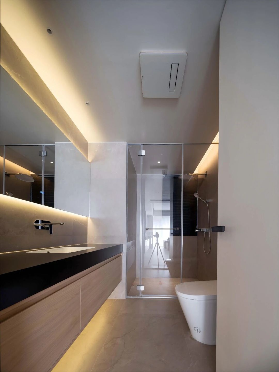 主卧是由两间房间改造成的,淋浴区和衣帽间结合设计,在家就能享受六星级套房。
