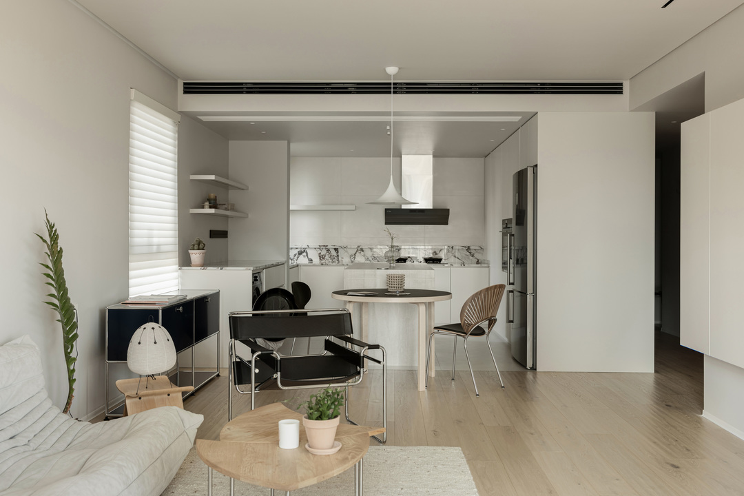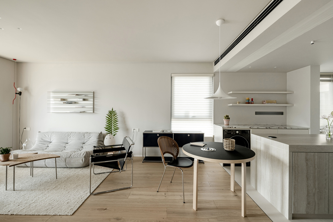 屋主对经典家具有着特别的喜爱,因此在本次项目中,我们打破了硬装优先的惯例,转而以家具为核心,硬装设计围绕家具展开。结合屋主对极简主义生活方式的追求,我们将“干净简约”作为空间的主调。这样的硬装设计不仅突显了每件家具的独特魅力,还为整体空间营造出和谐而统一的氛围。