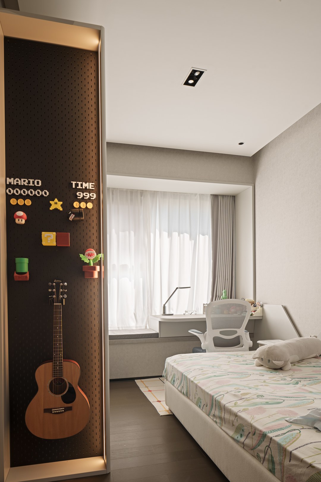 男孩房间,睡眠,学习台,衣物书籍玩具收纳,空间极限利用,做到有序分区