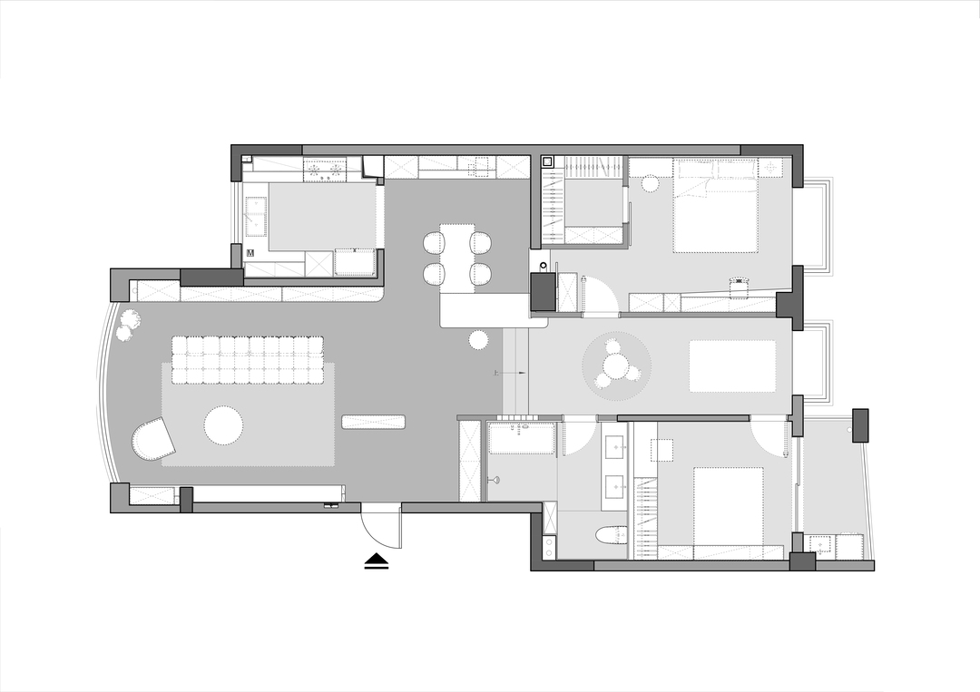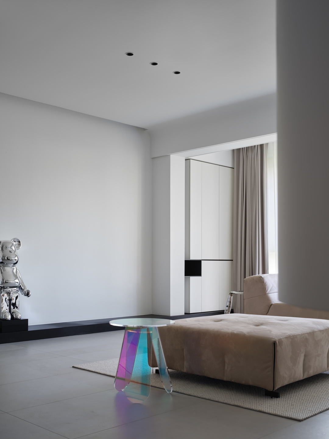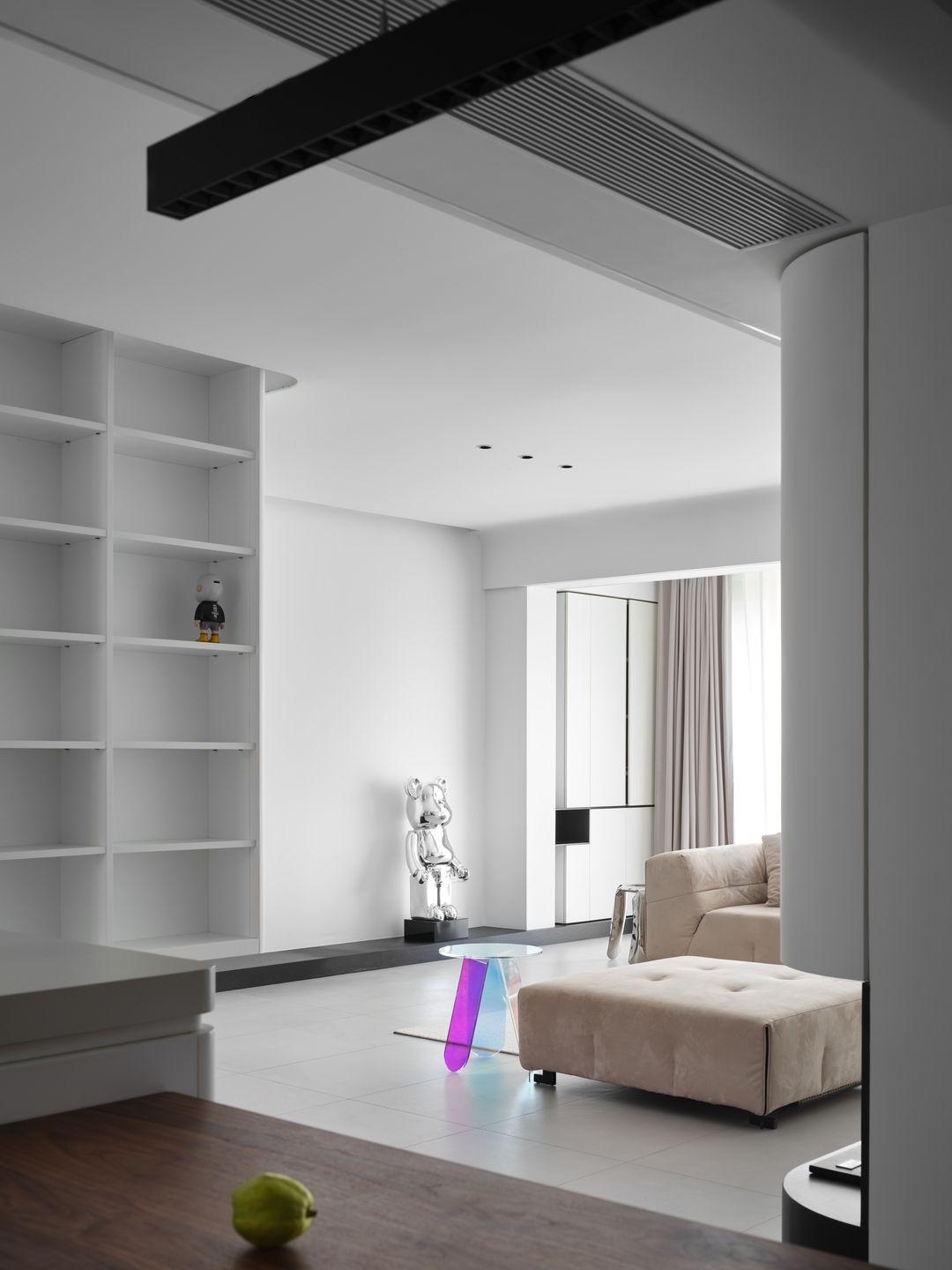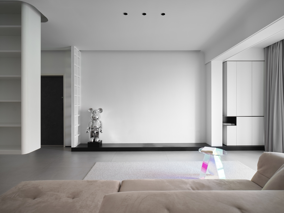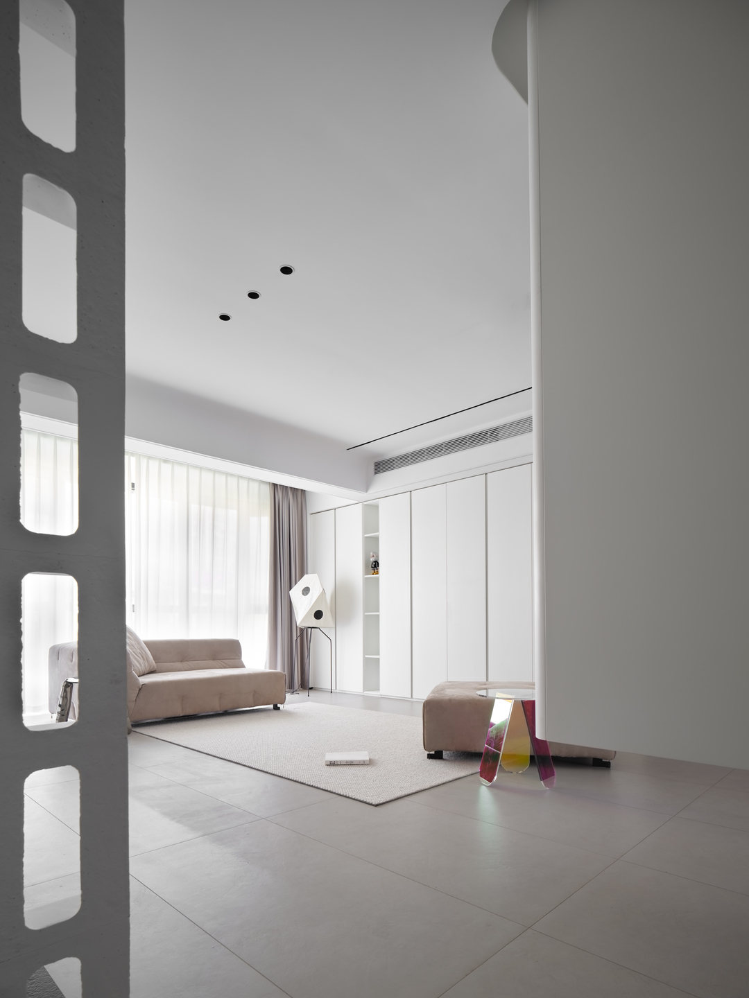 前言: 浮于表面的设计已难以满足新生代审美,主张精神自由与独特思想的人,更加注重生活的本质。本案通过设计上的减法,强化空间光线、空间和质感带给人的感官体验,用空间互动的关系,营造一个简介、干净、明朗且有足够活动空间的简白之家。