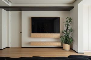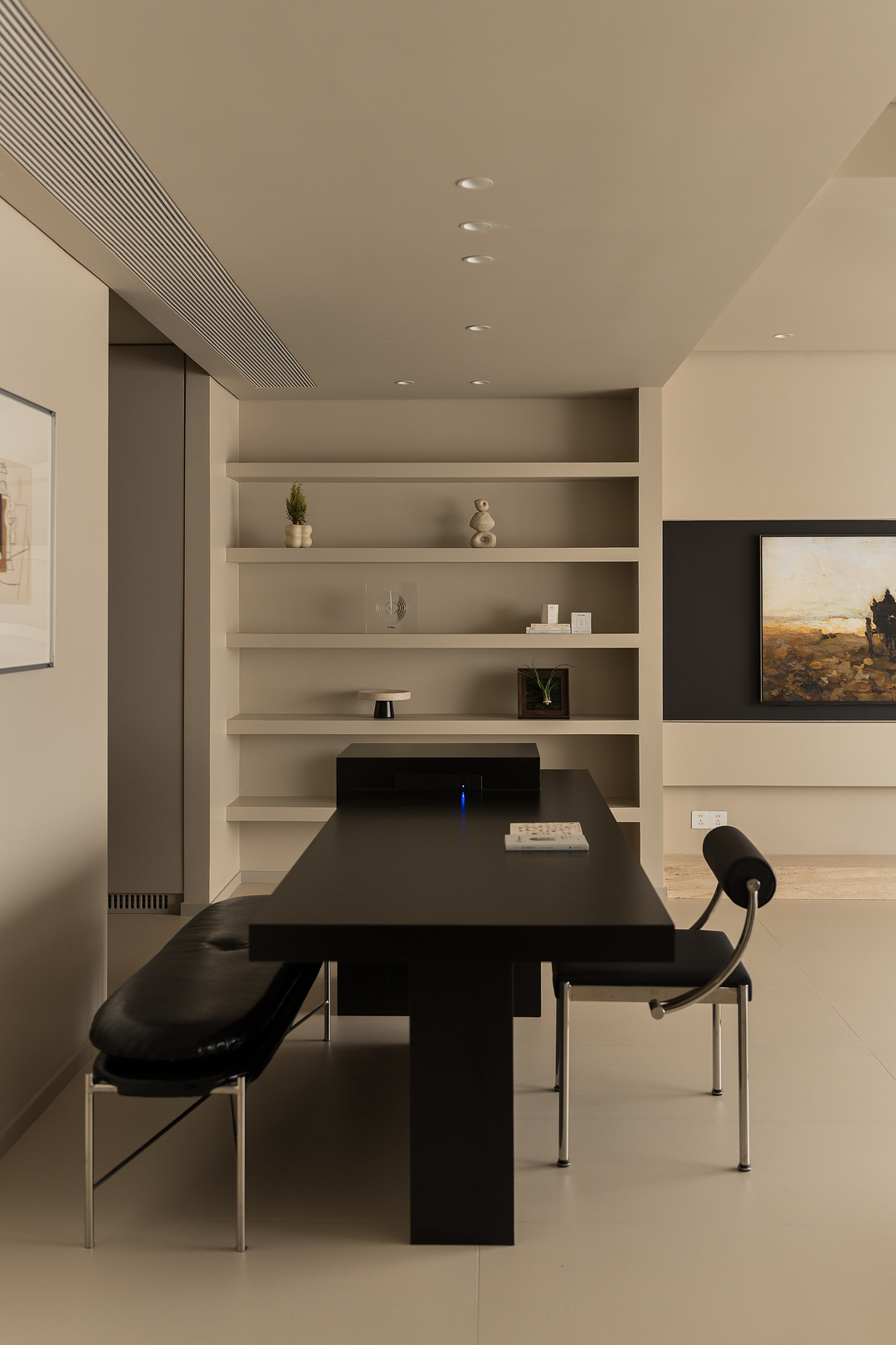 与其藏着掖着,不如干脆裸露一部分横梁,让它成为空间的一部分。