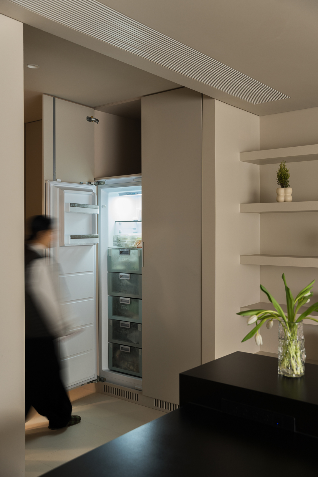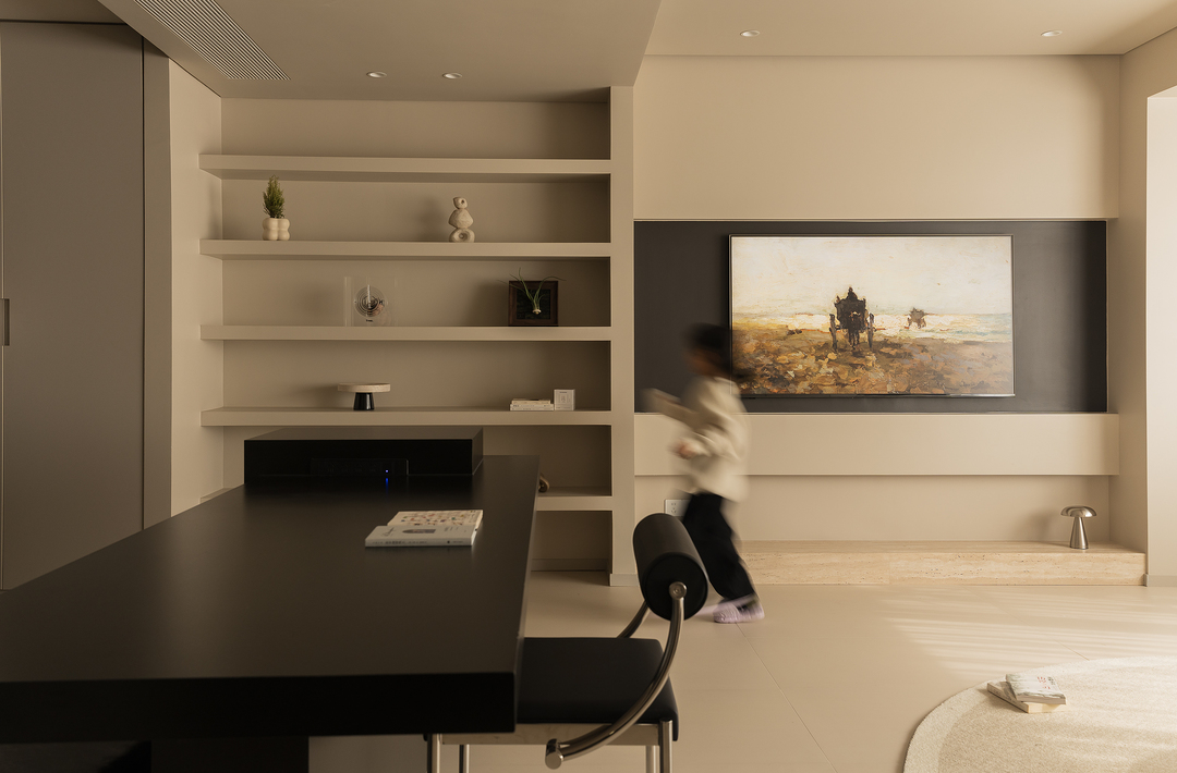 餐桌+岛台组合C位出道,让客餐厅形成一个自然流畅的洄游动线。