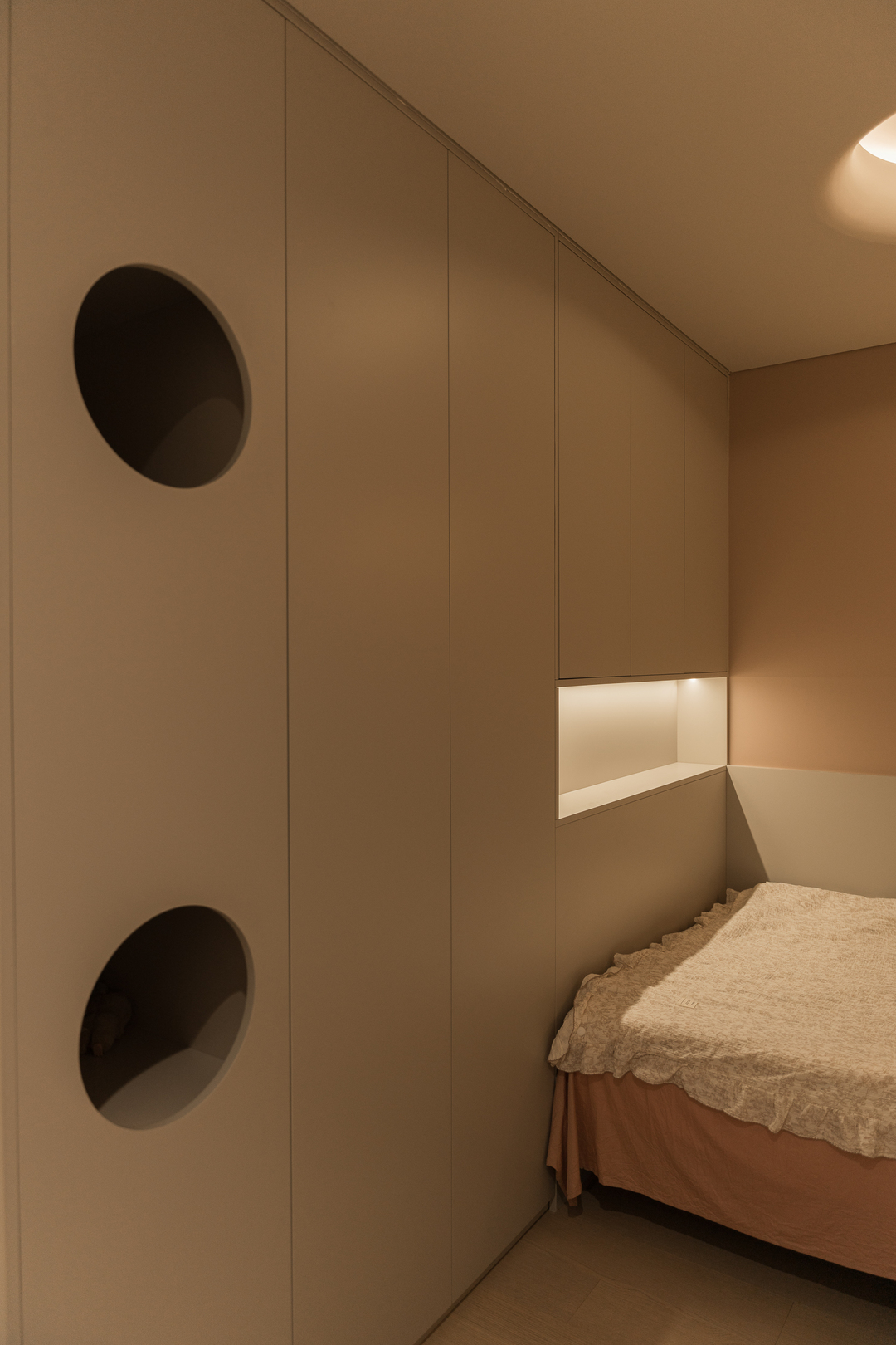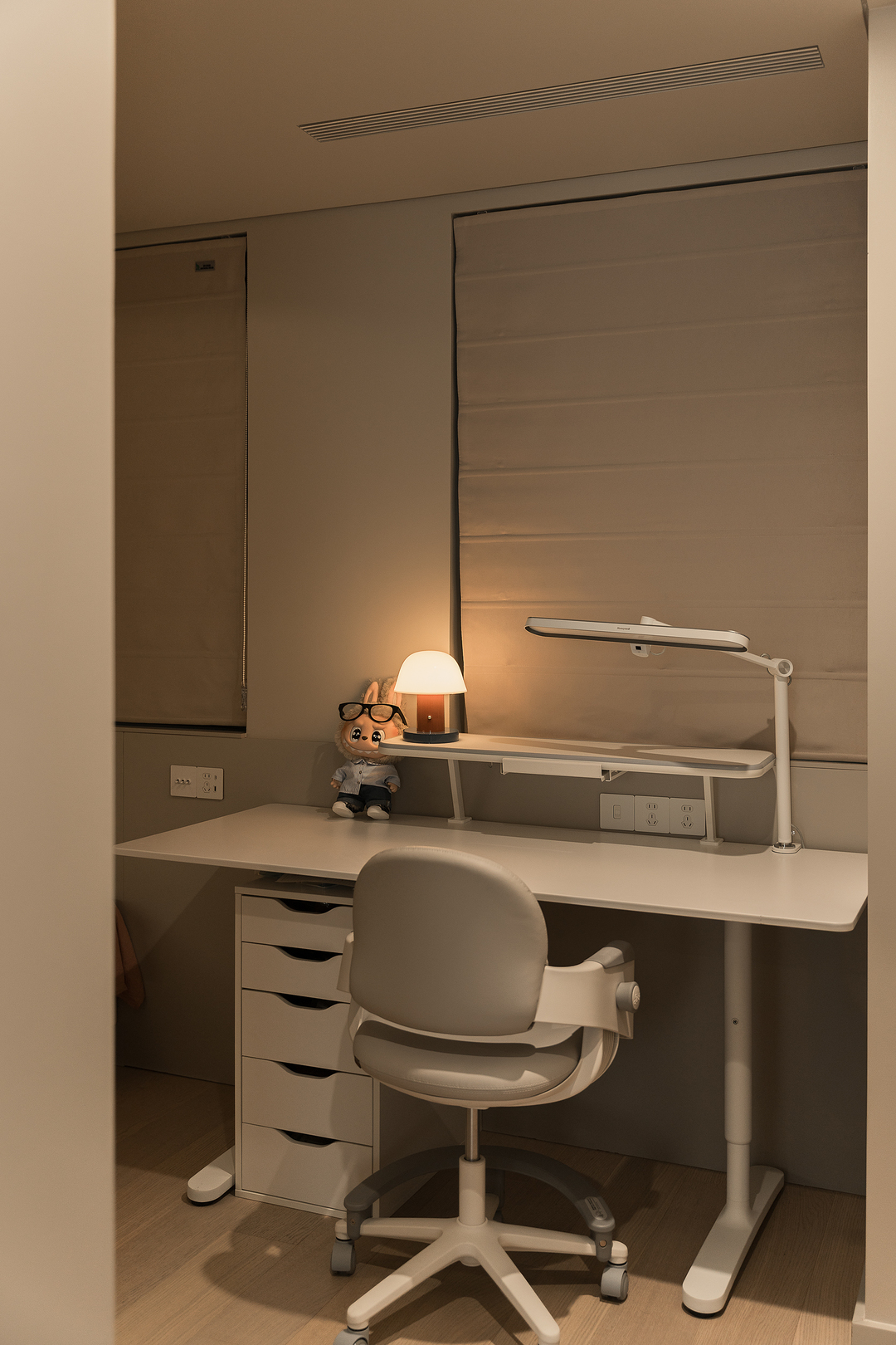 衣柜、书桌、儿童床一应俱全,未来孩子长大了,空间也足够灵活调整。