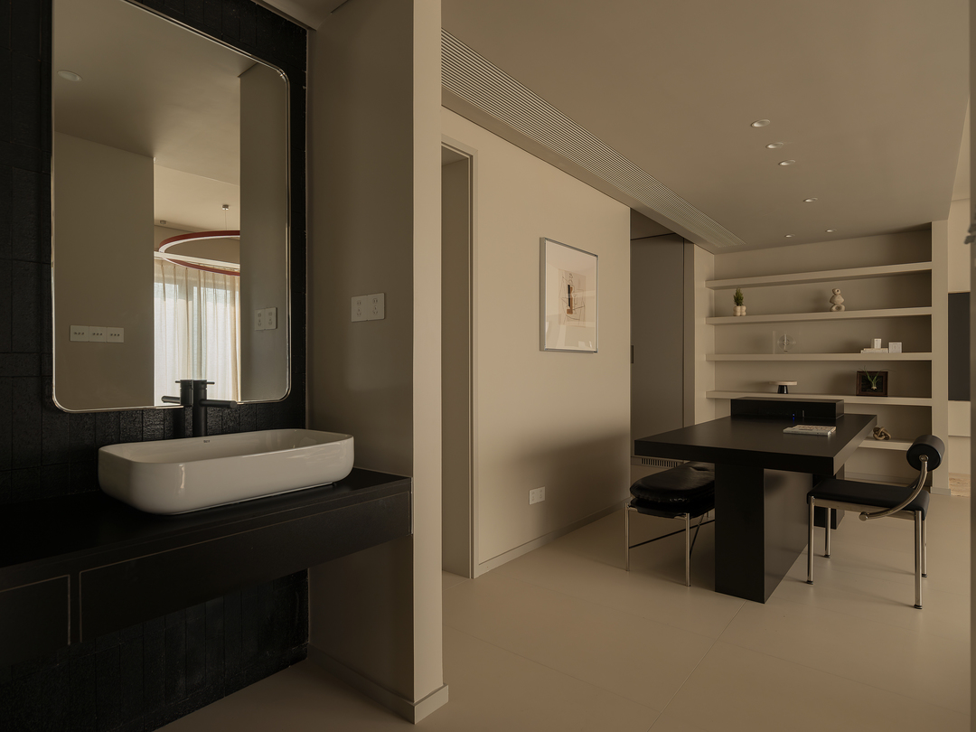 主卫墙体不动,但洗手台干区外置,完美实现干湿分离,早晚高峰也不用抢厕所。