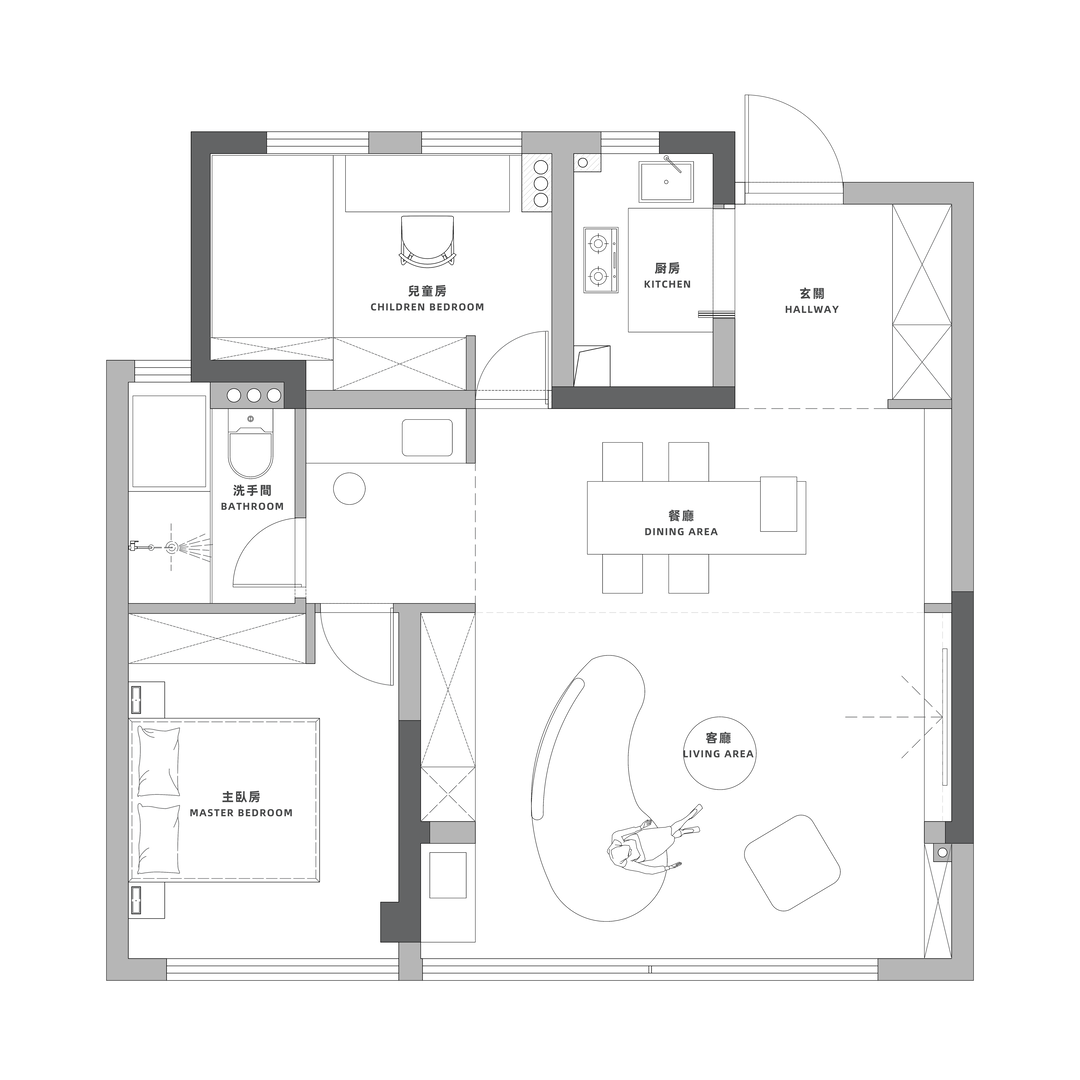 解决了原始餐厅的位置问题,同时让空间更通透。