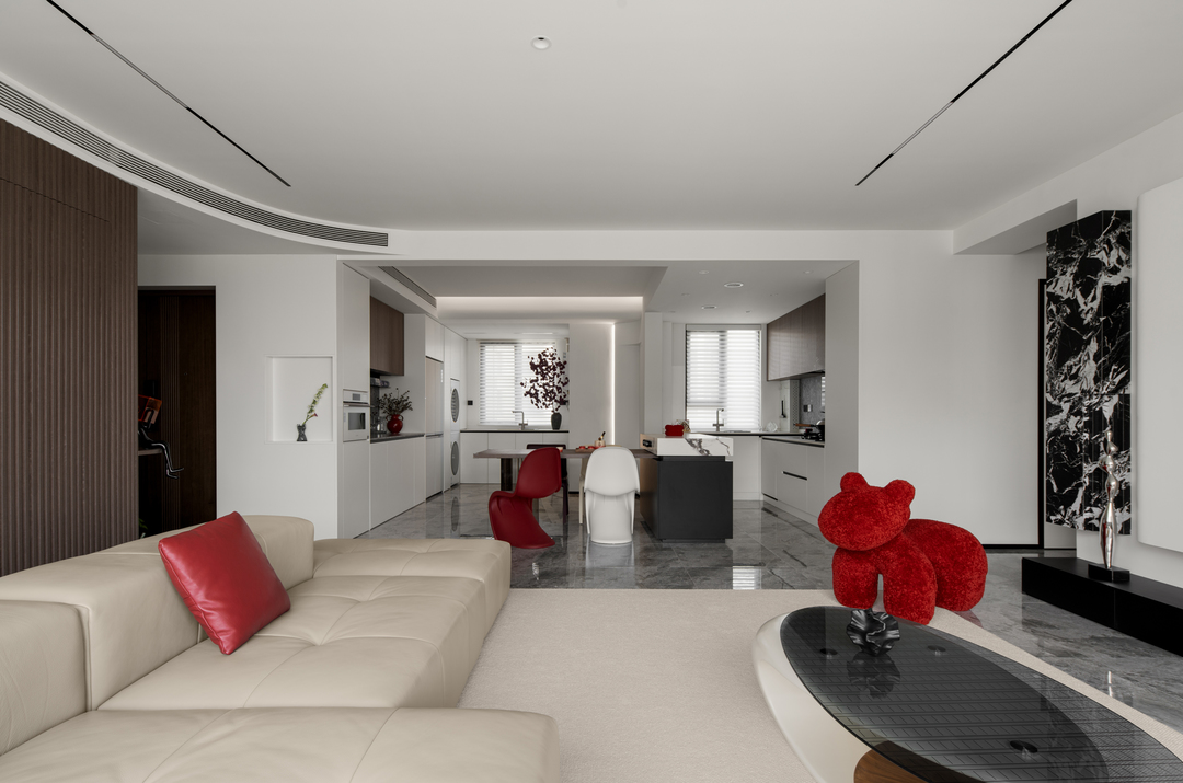 前言: 本案是一套精装改造项目,业主一家四口居住,因此对居住空间有不同的需求,同时也希望能在设计师增添一些特别的设计。设计师将整体打造出现代简约风格,融入了个性化的创意元素,传递出一种精致且充满生活气息的居住氛围。