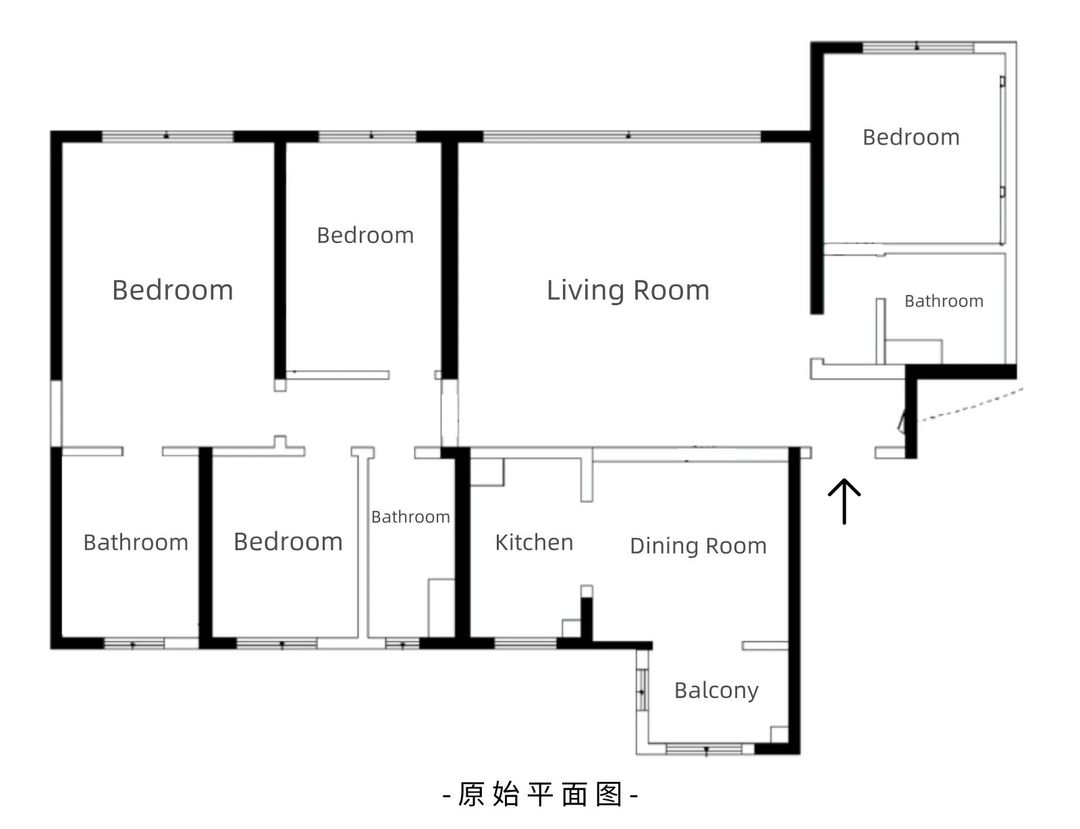 ● 空间改造要点❶ 客餐厅开放式设计,增加采光和通透效果;❷ 拆改餐厨区部分墙体,扩大餐厅空间;➌ 拆除阳台墙体并入餐厅,布置家政区;❹ 各个区域设计充足的储物空间,满足日常收纳。