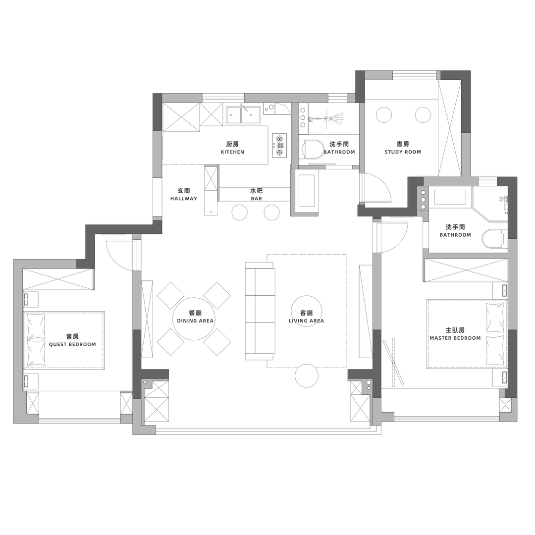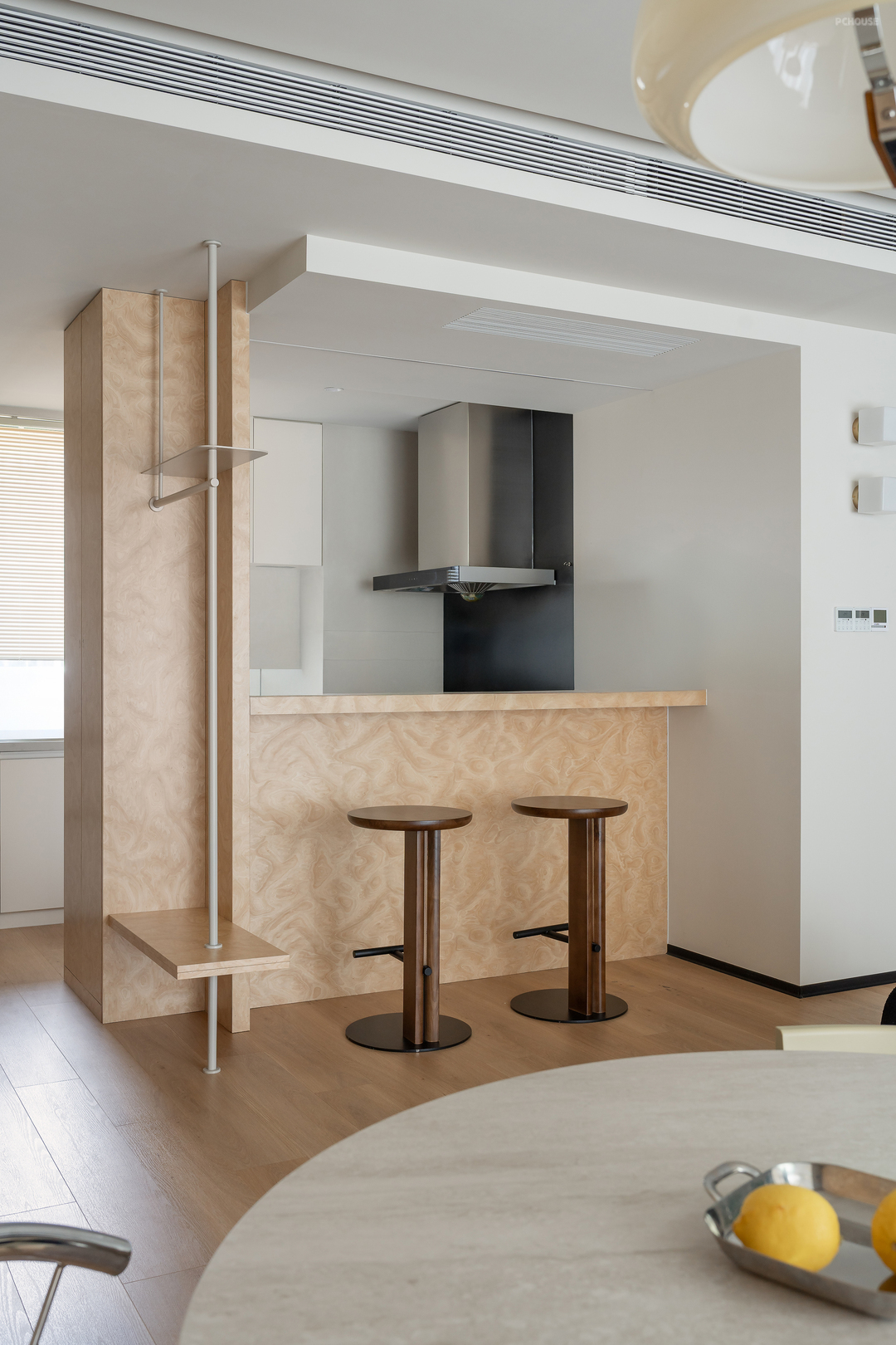 动线关系:餐桌靠近水吧区,不再拘泥于“餐厅”概念,让空间自然流动。