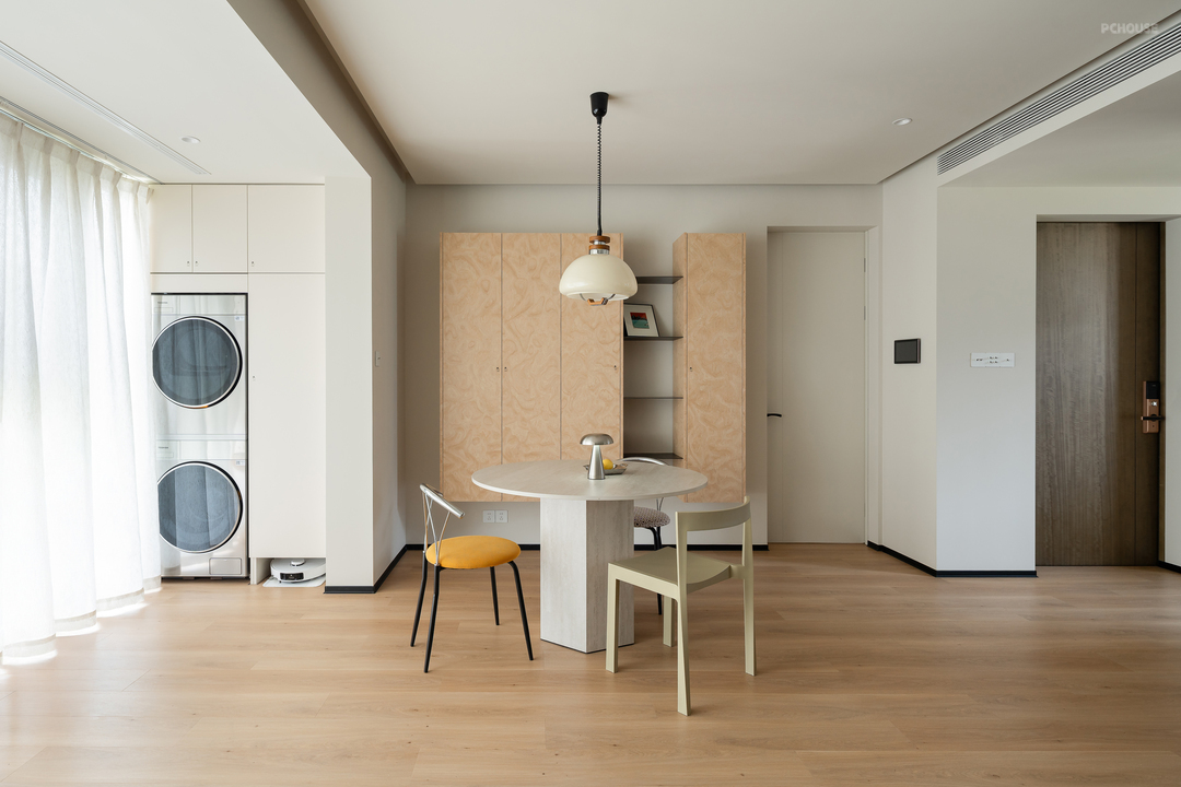 餐桌选用小体量设计,不压迫空间感,随时可以变身工作台;