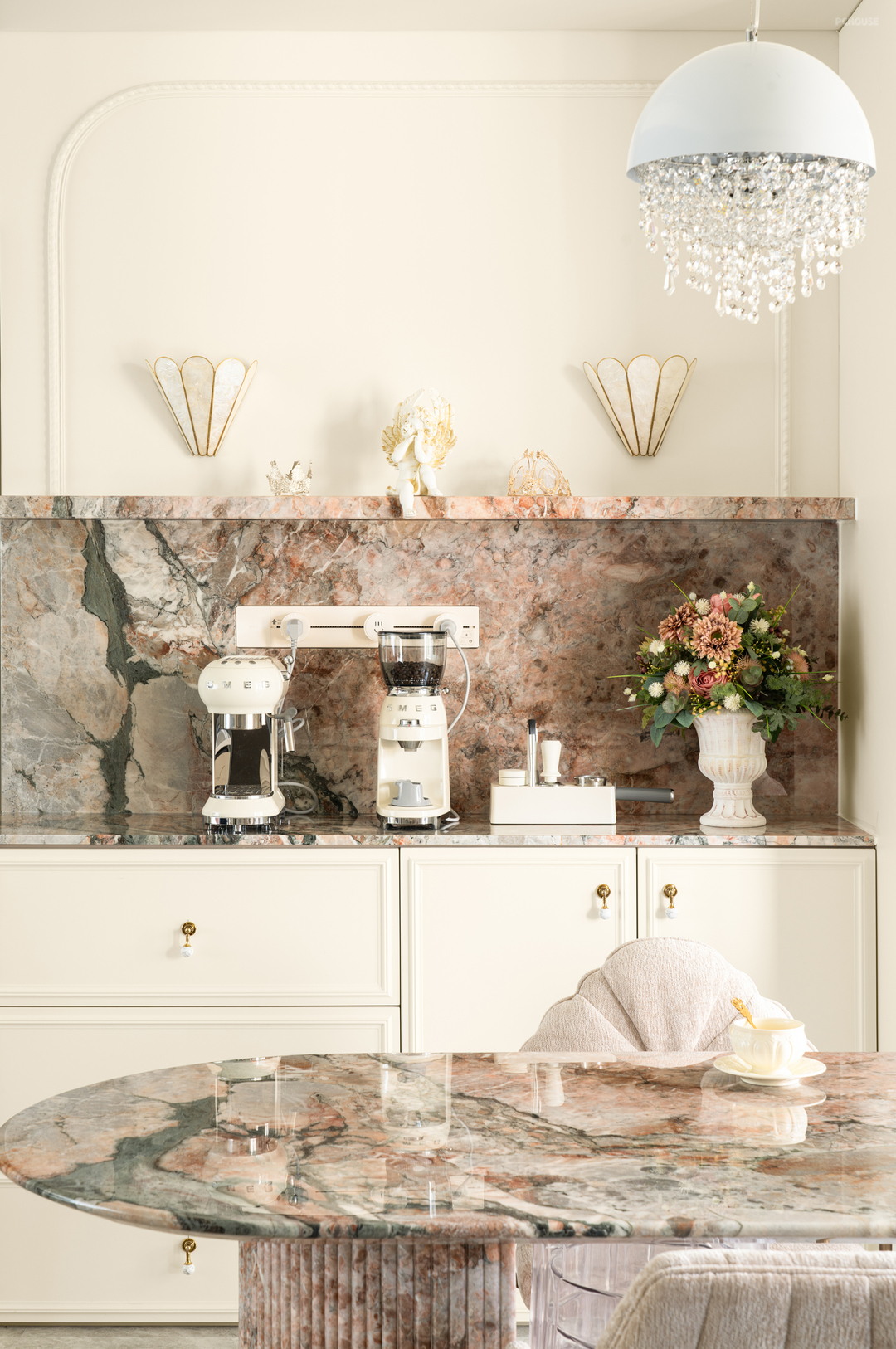 定制石材餐边柜和餐桌,搭配咖啡机、小家电使用更方便。