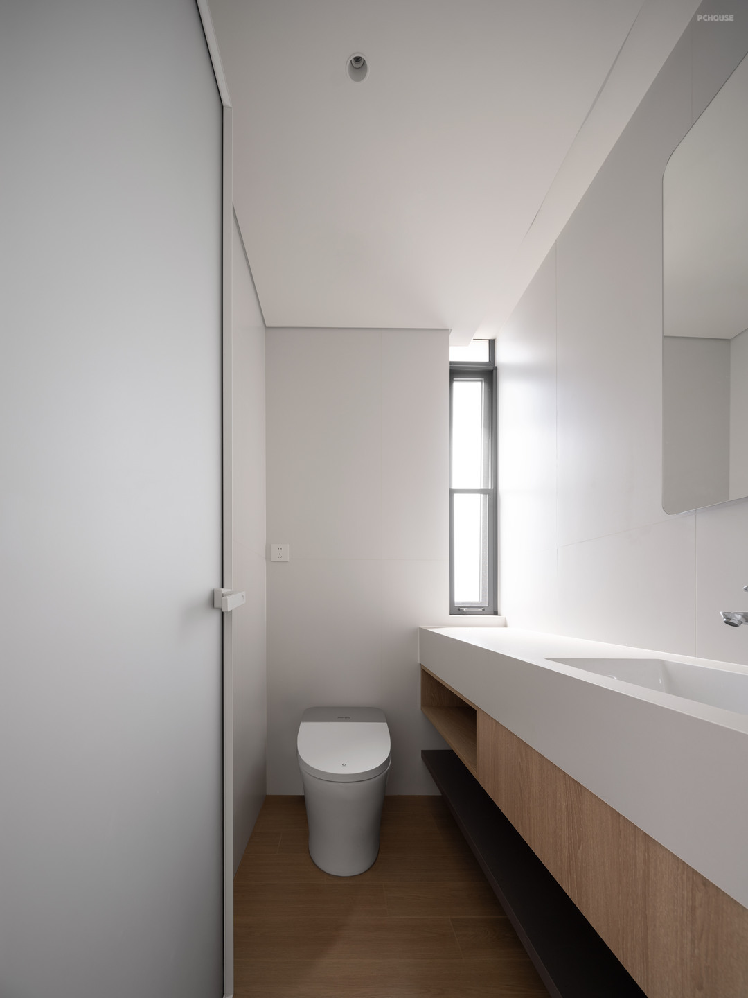 主卧重新规划了卫生间,仅预留马桶间和台盆区,方便日常使用。杜邦一体台小台盆,既方便洗手,又能给女士补妆置物功能满足高效的生活需求
