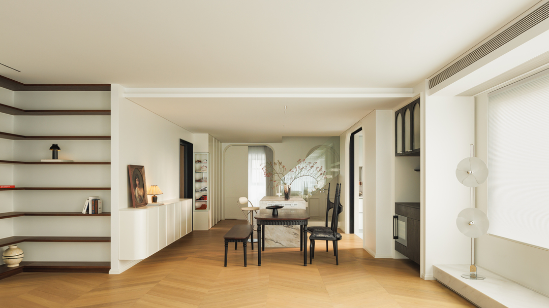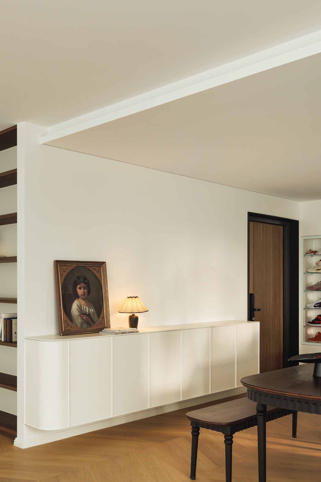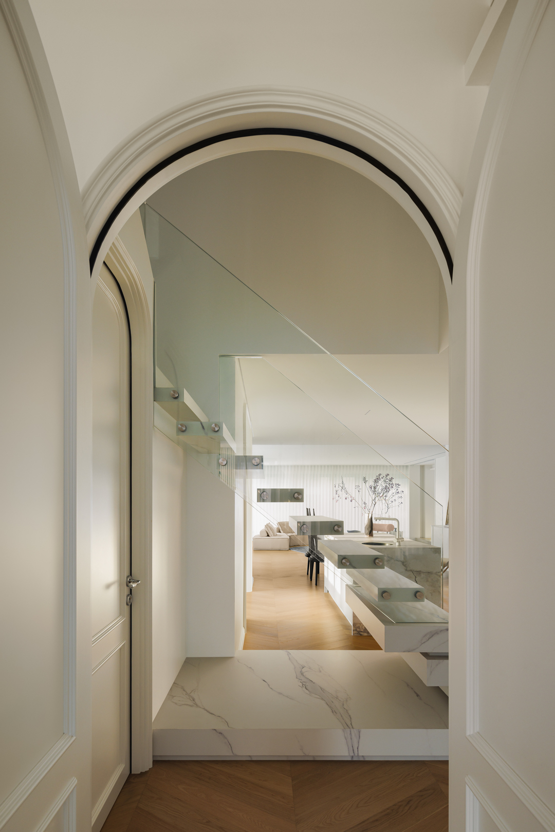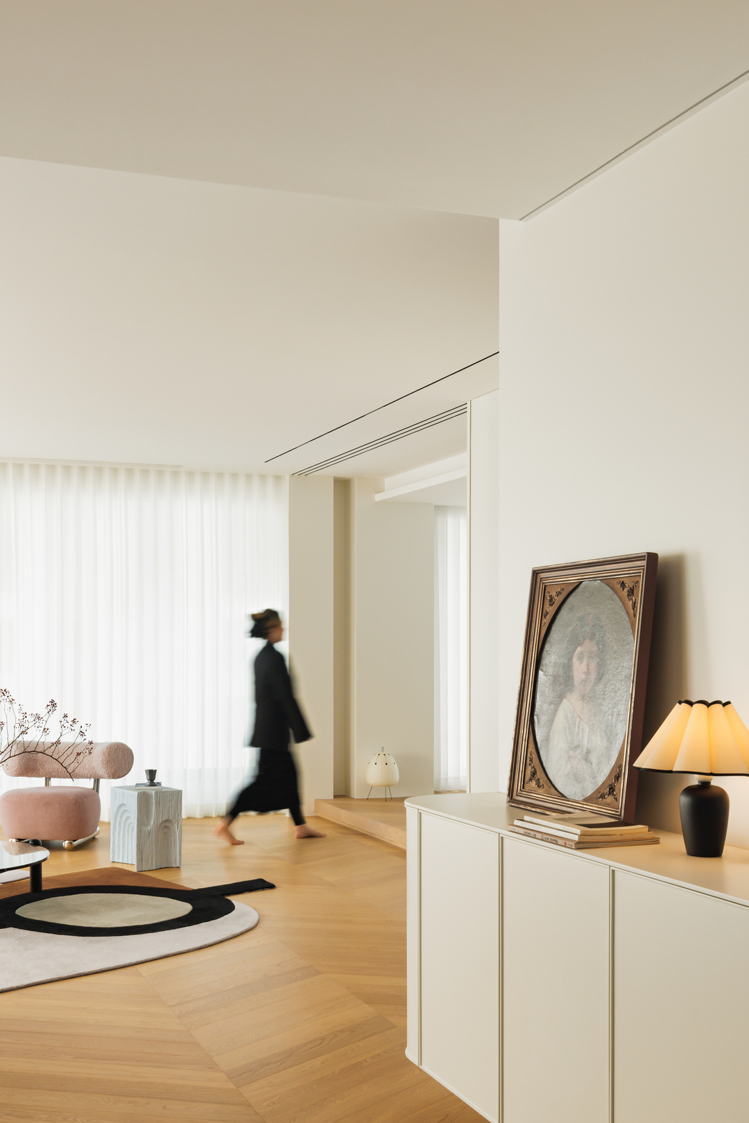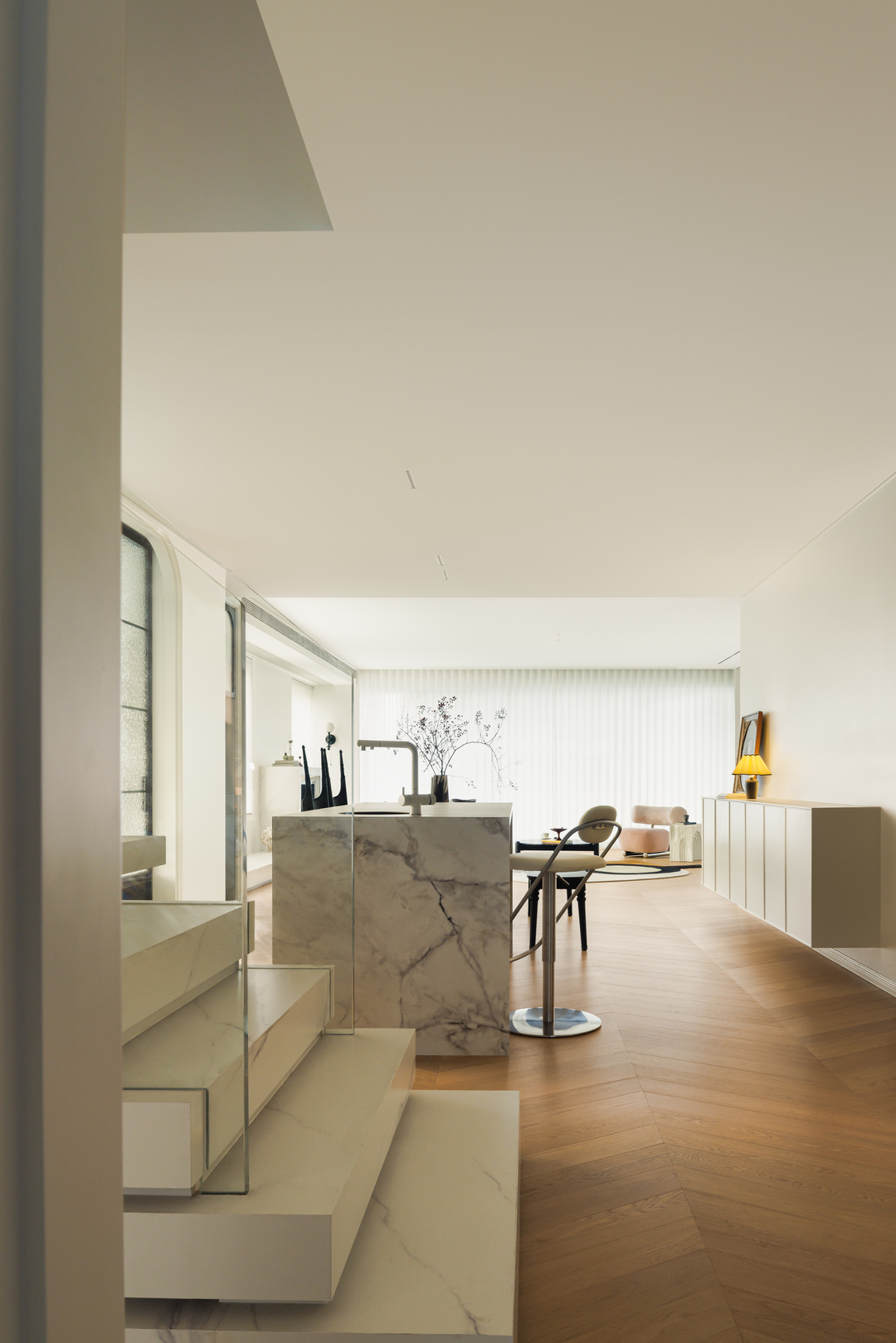 项目是一个错跃户型,面积约214平方。我们在设计上,选择打破空间常规,让家更随性慵懒。原始餐厨布局散乱,影响采光和空间利用率。于是拆除多余墙体,将客厅阳台打通,让原本“拥挤”的格局瞬间得到尺度释放,空间方正让光自由穿透。合理规划个人空间,将女儿房的布局尽量最大化,主卧则独享一份舒适安逸。