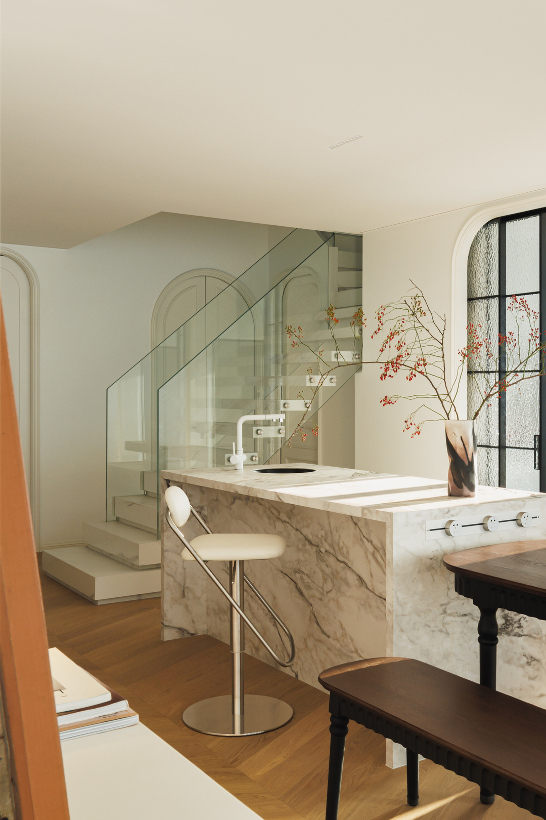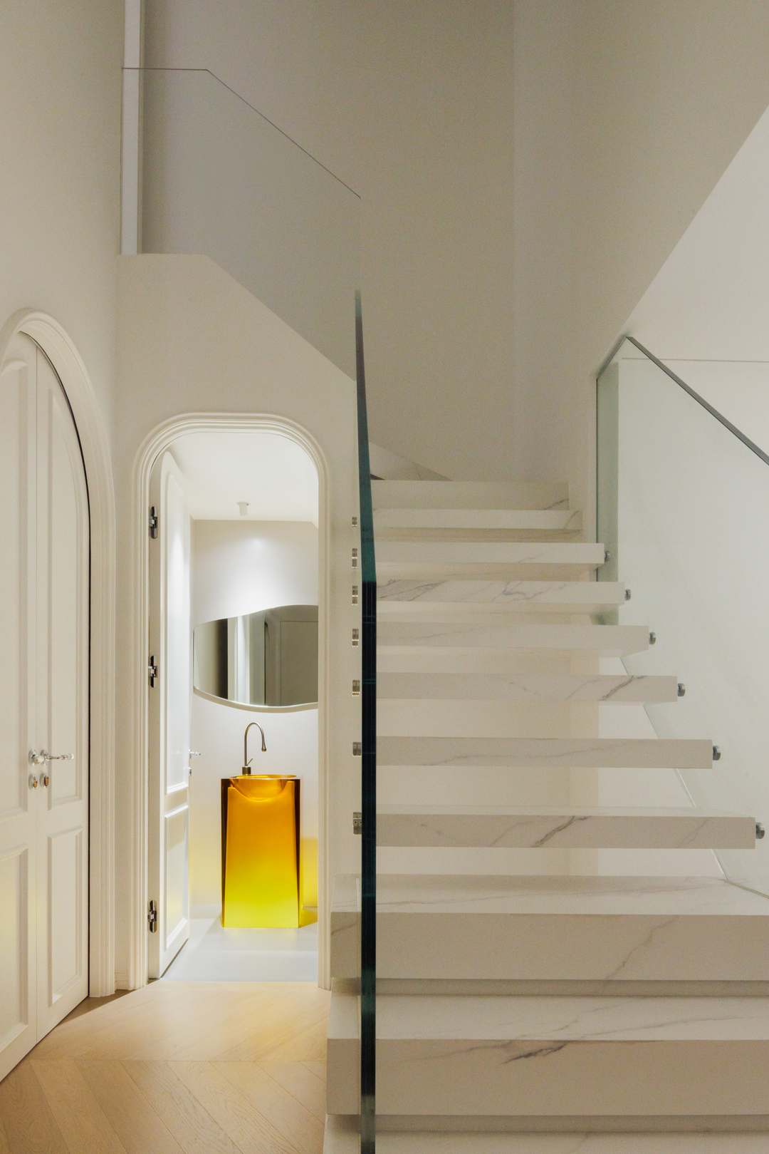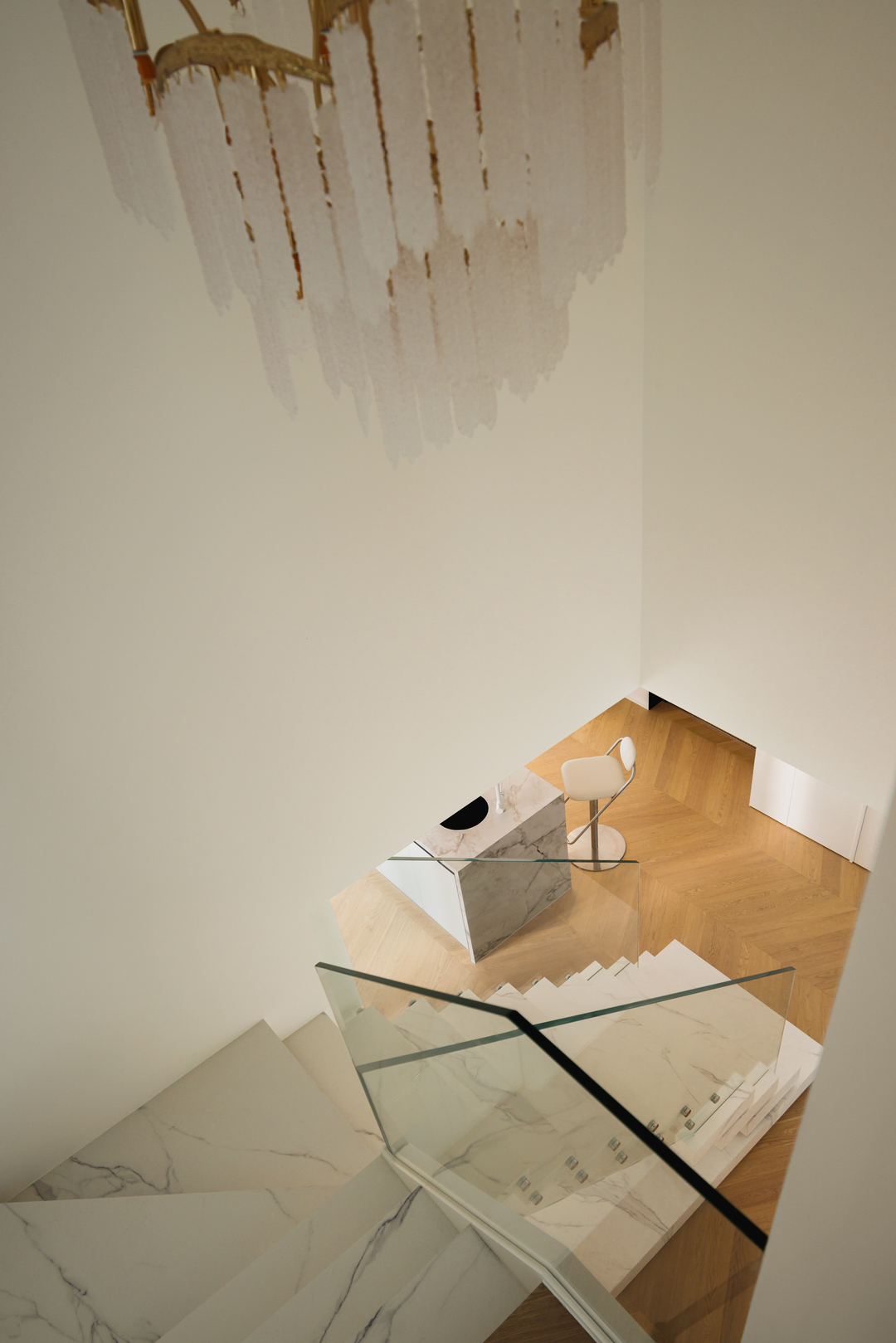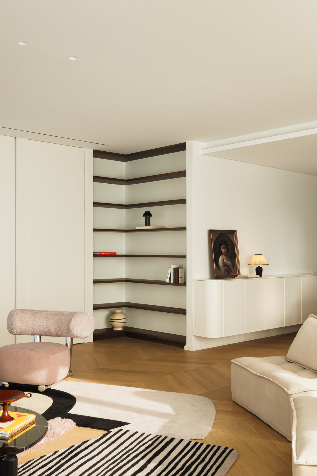 项目是一个错跃户型,面积约214平方。我们在设计上,选择打破空间常规,让家更随性慵懒。原始餐厨布局散乱,影响采光和空间利用率。于是拆除多余墙体,将客厅阳台打通,让原本“拥挤”的格局瞬间得到尺度释放,空间方正让光自由穿透。合理规划个人空间,将女儿房的布局尽量最大化,主卧则独享一份舒适安逸。
