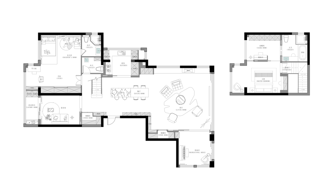 热爱工作的业主夫妻平时非常繁忙,回到家希望可以快速剔除“班味”,享受温馨的亲子互动同时自己也要有专属的慵懒角落。