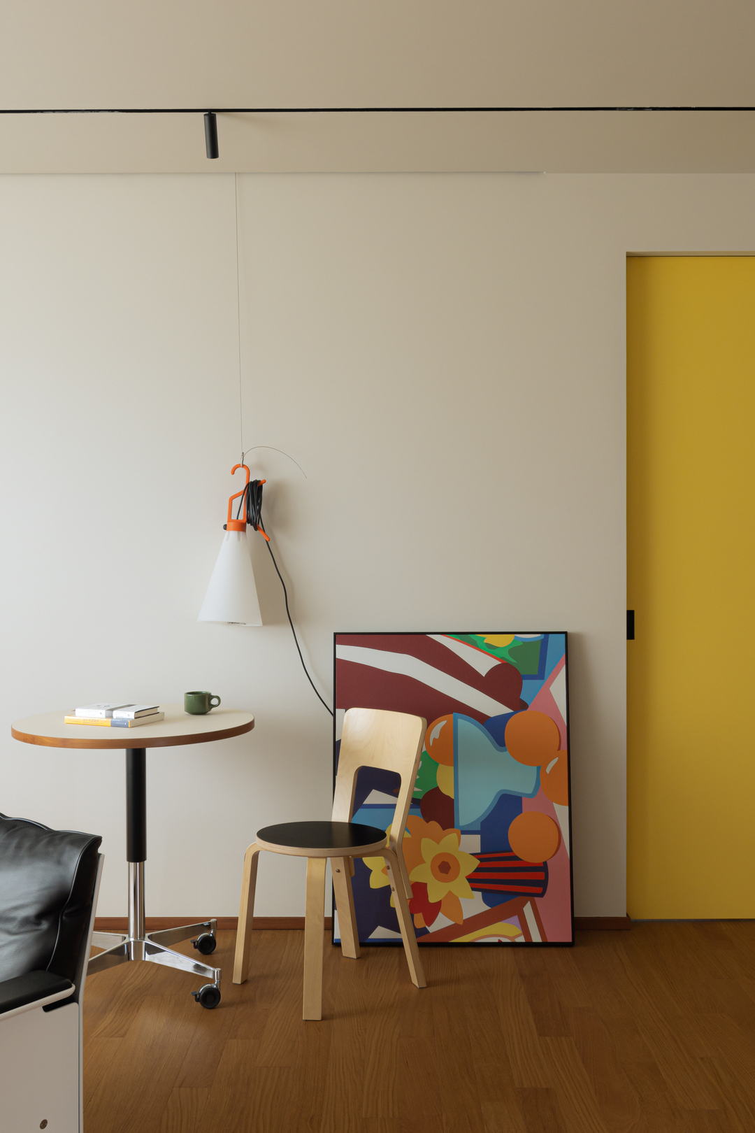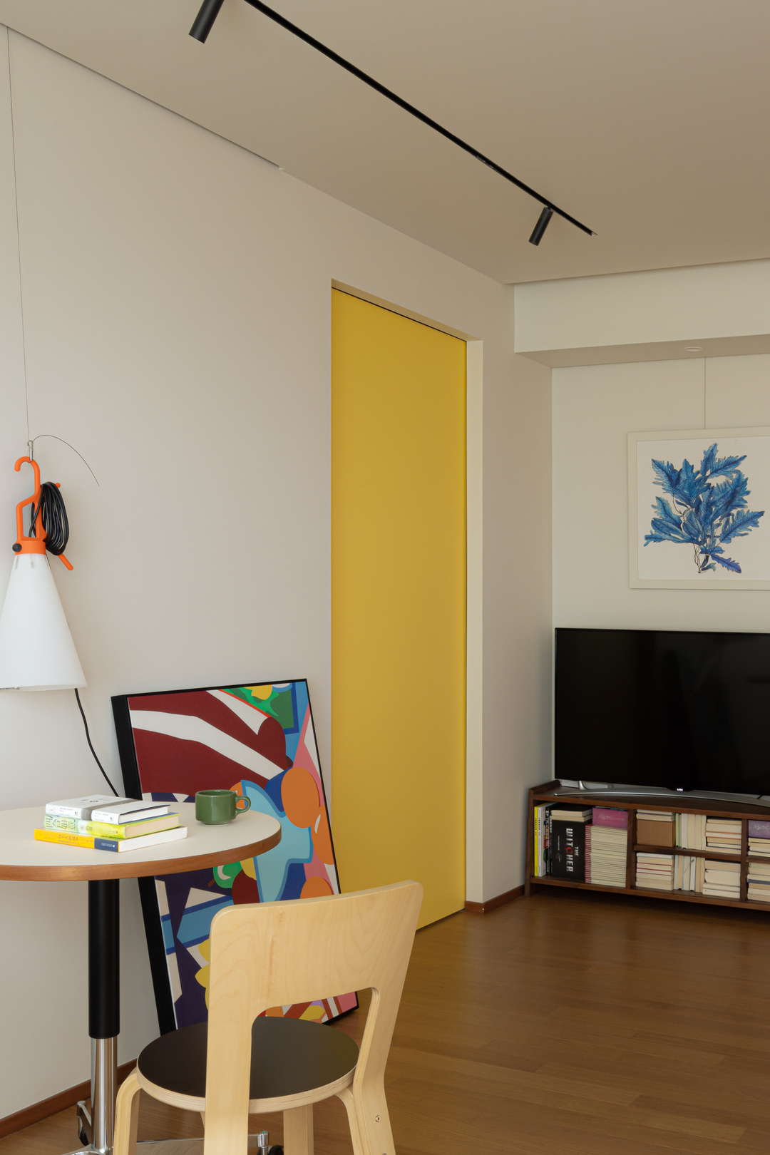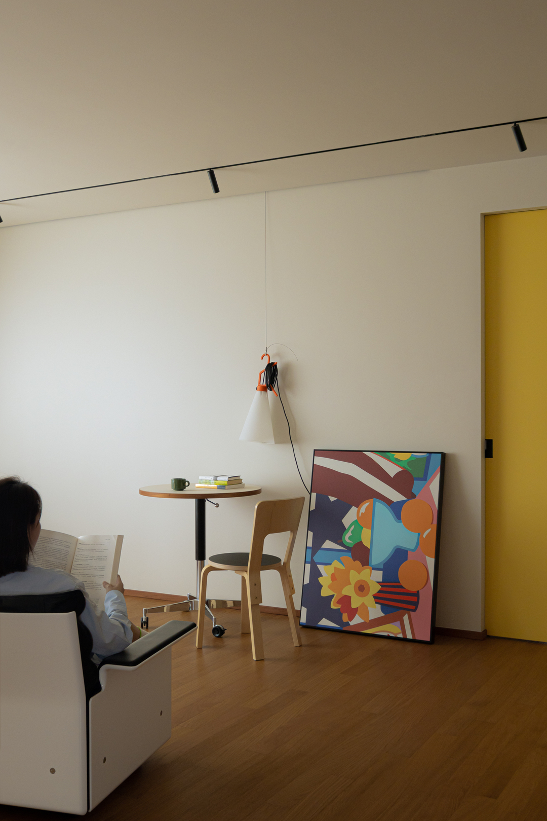 浅白底色被一抹明黄点亮,让空间跳出“寡淡”桎梏。可移动圆桌、设计感挂灯,搭配简约座椅,在“少即是多”的布局里,藏着对生活的追求。