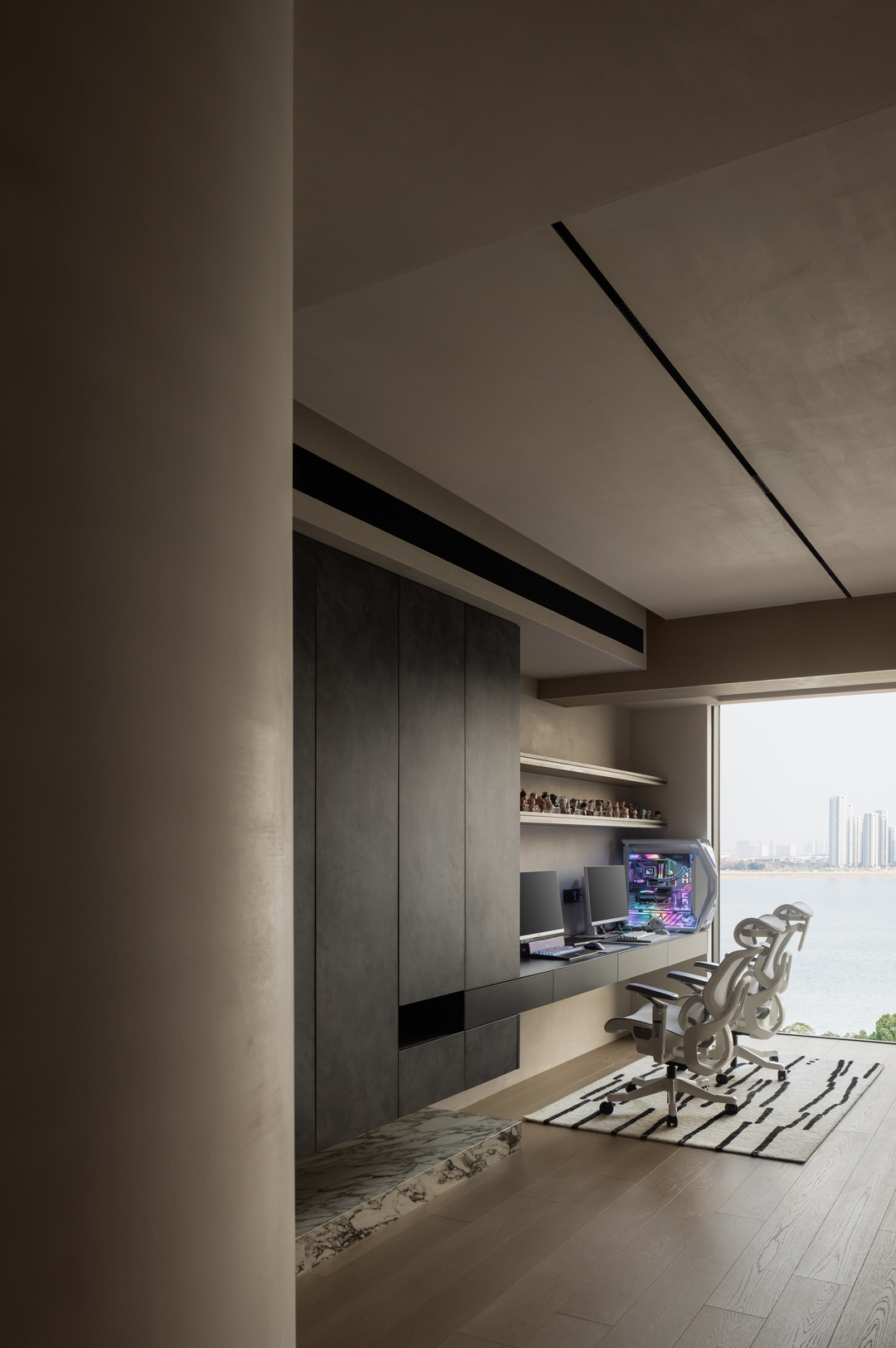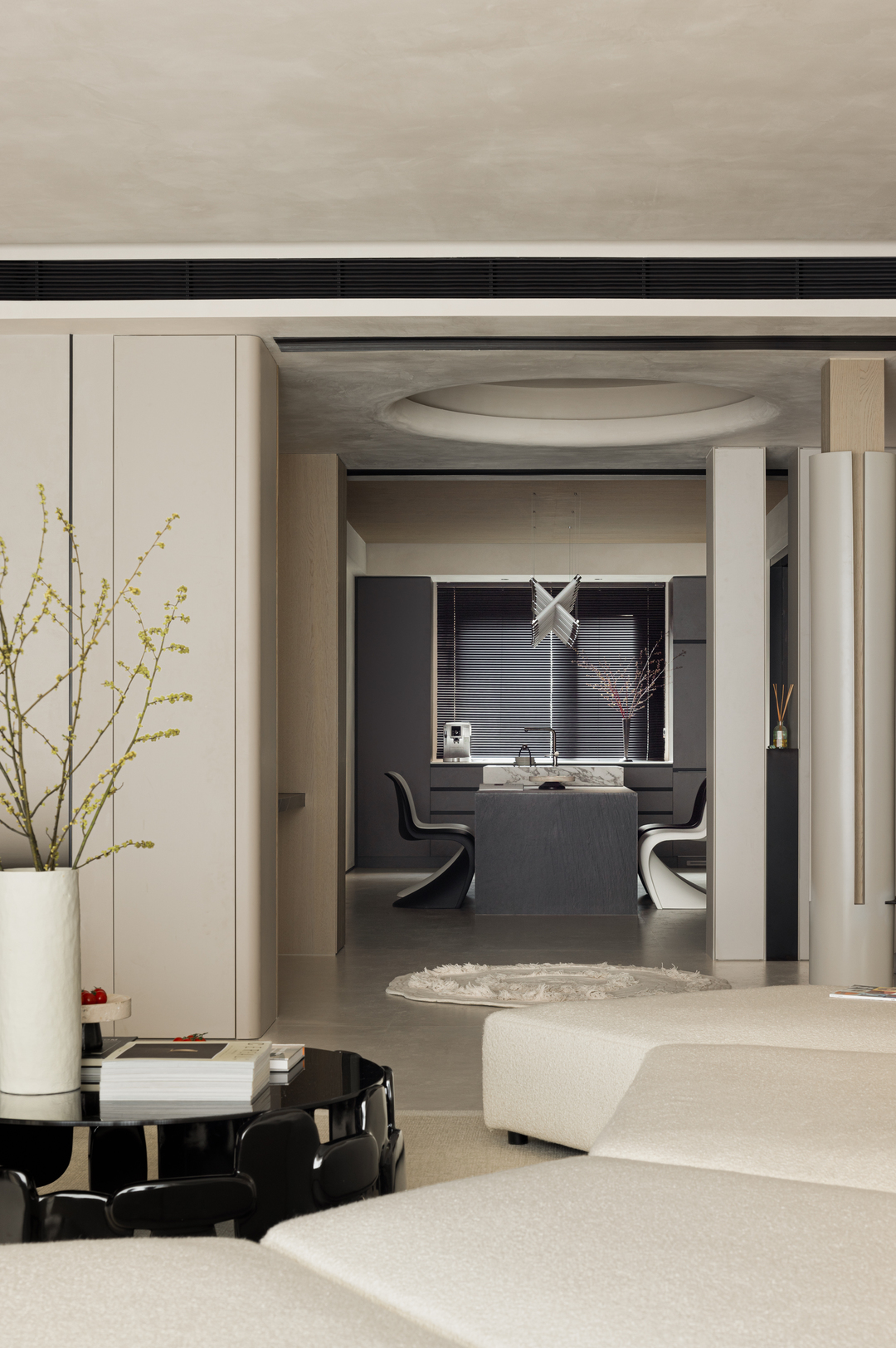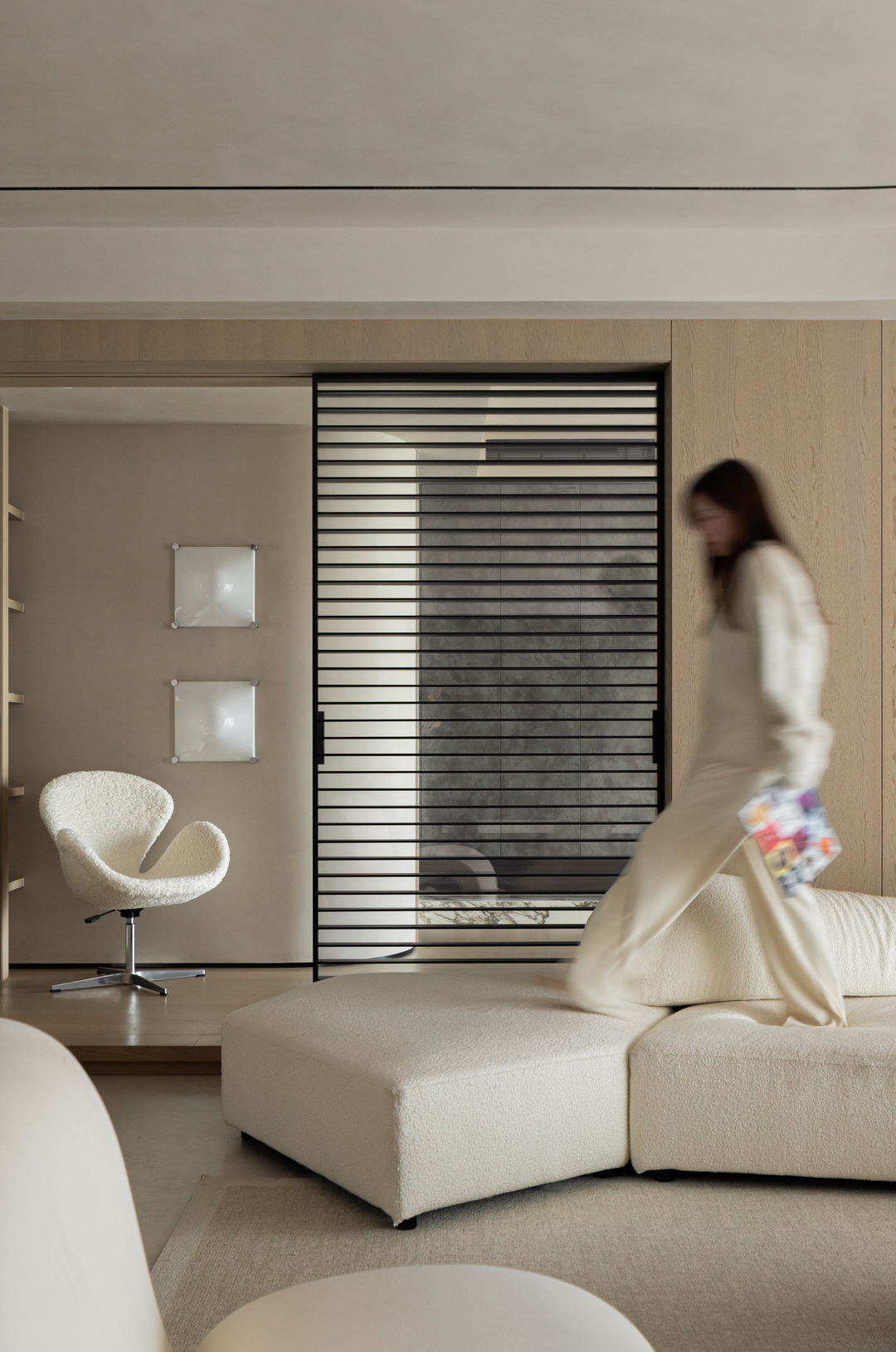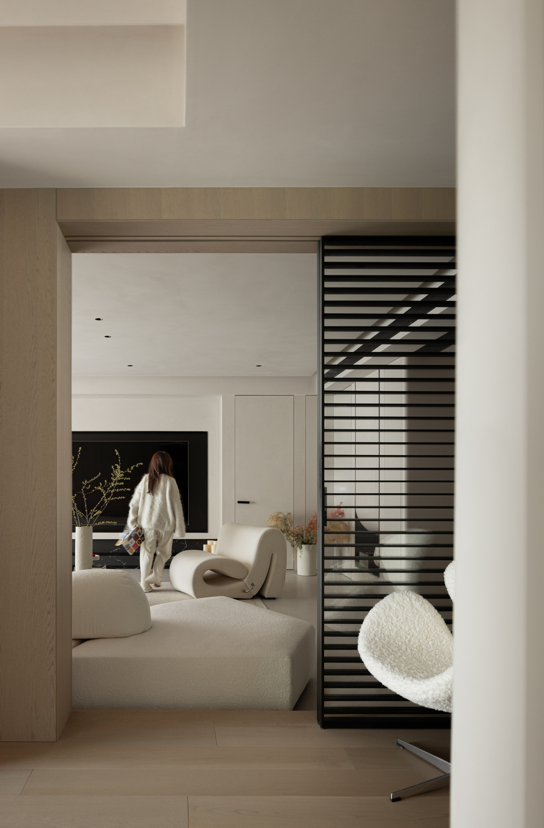 木质的温润,微水泥的细腻肌理,线性光的轻盈韵律——每处细节皆默契呼应,于喧嚣都市中开辟出理性的栖息地。