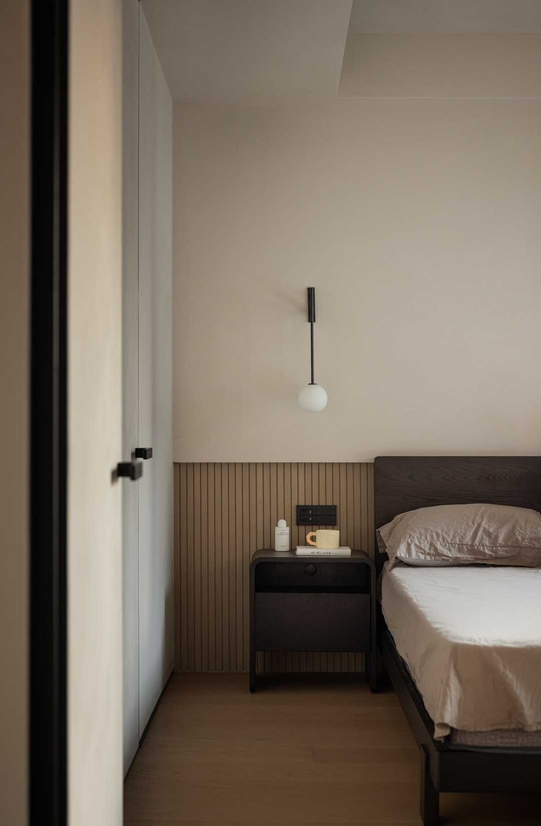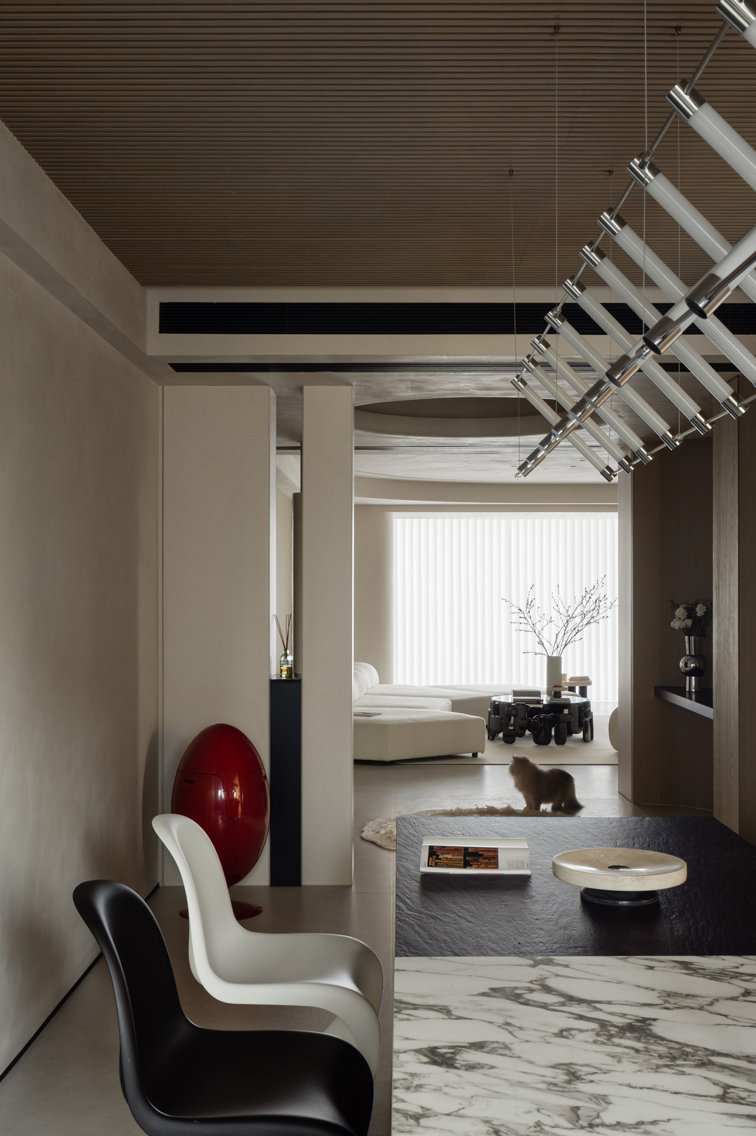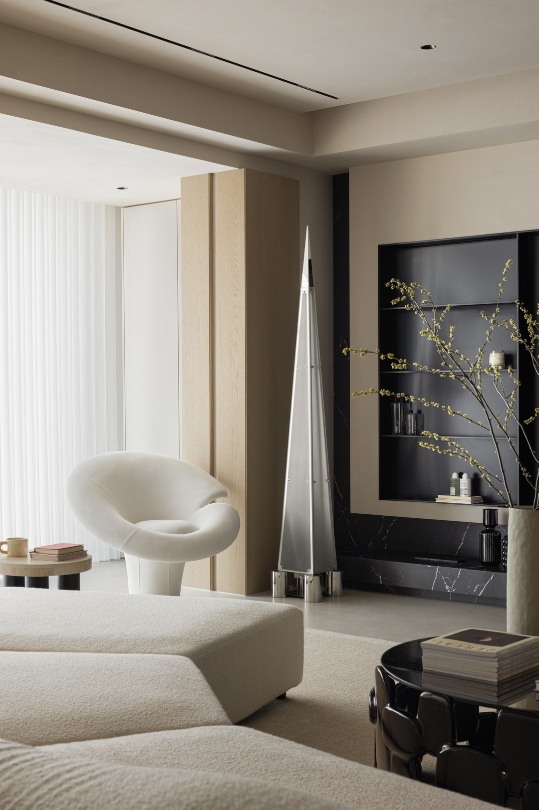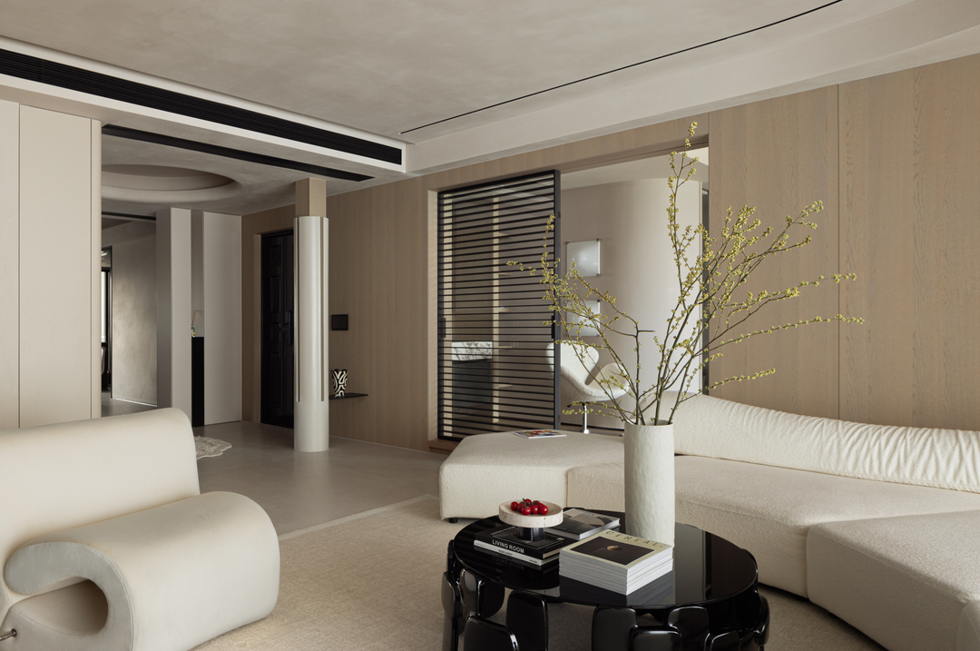木质的温润,微水泥的细腻肌理,线性光的轻盈韵律——每处细节皆默契呼应,于喧嚣都市中开辟出理性的栖息地。