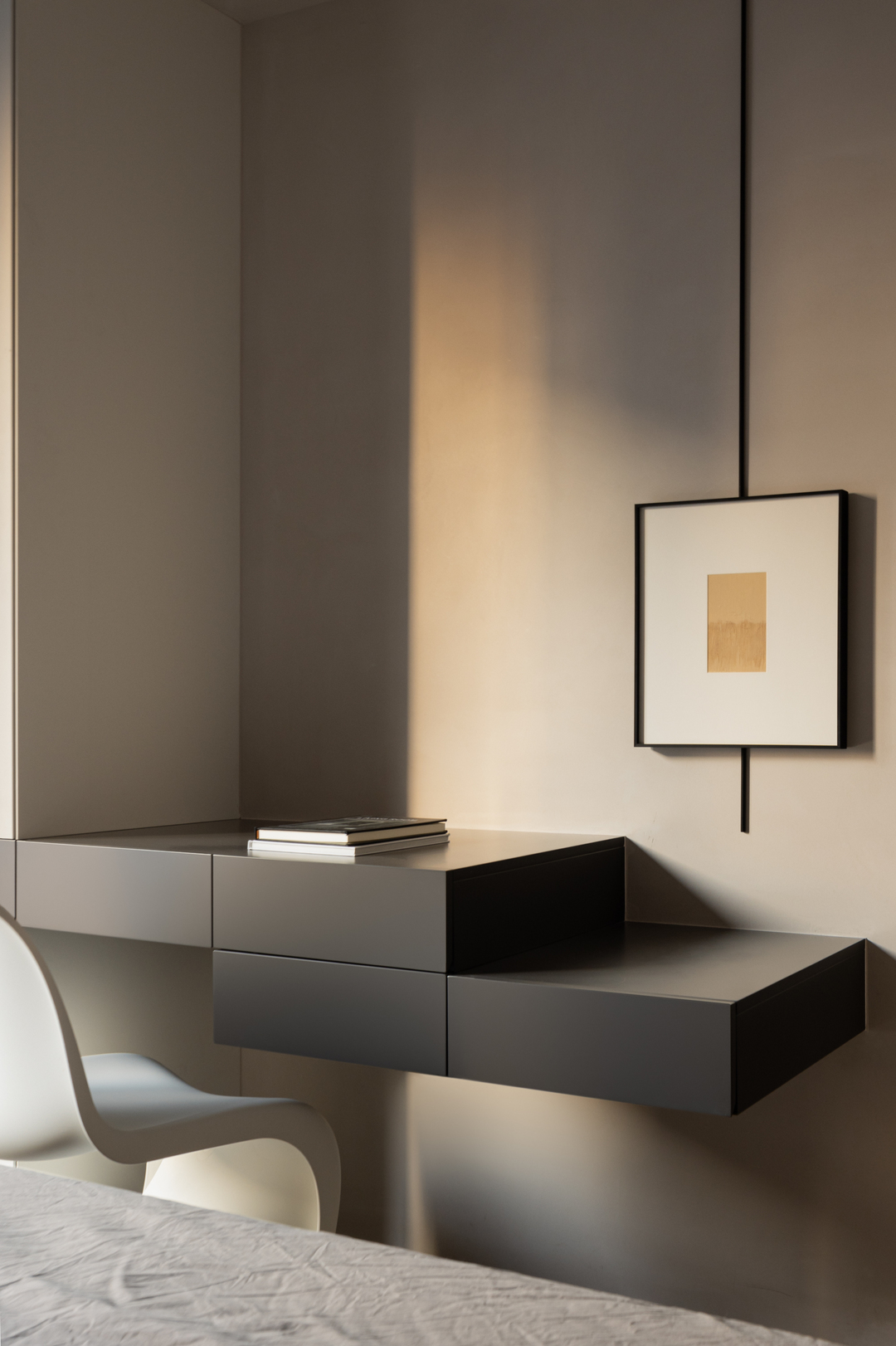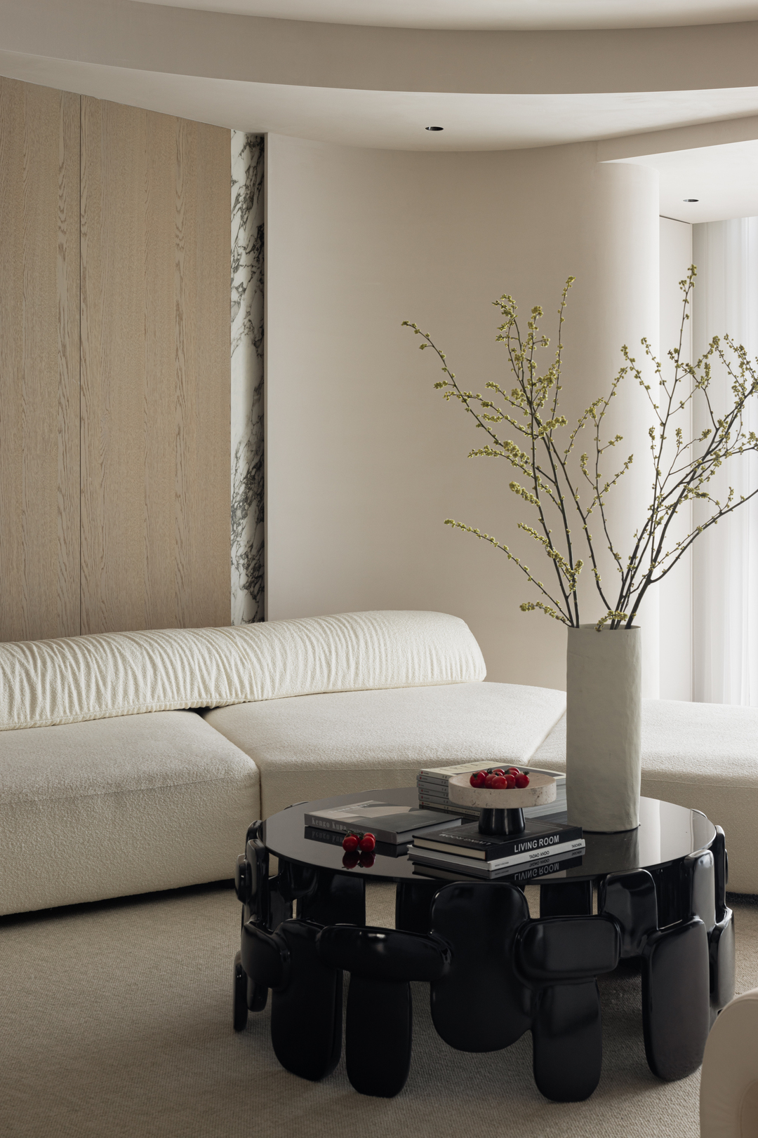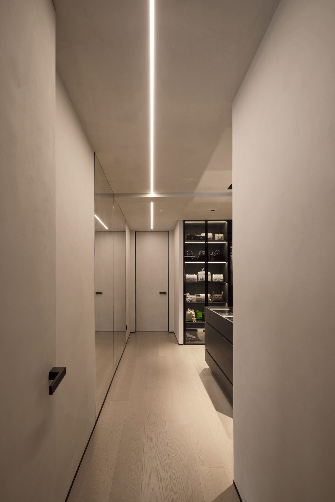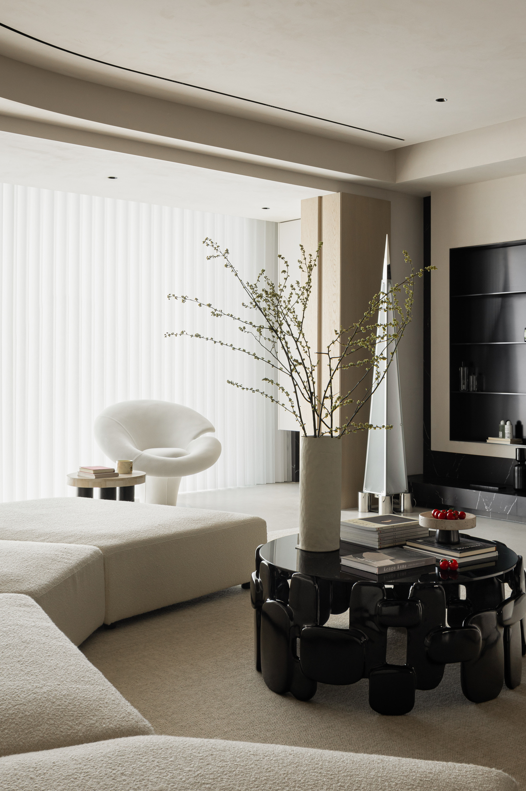 木质的温润,微水泥的细腻肌理,线性光的轻盈韵律——每处细节皆默契呼应,于喧嚣都市中开辟出理性的栖息地。